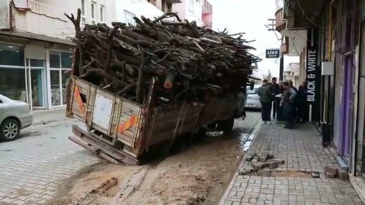 Adıyaman’ın Kahta ilçesinde tekerlekleri toprak yola saplanan odun yüklü kamyon, devrilme tehlikesi geçirdi.Edinilen bilgiye göre, Kahta ilçesi Fatih Mahallesi Mehmet Akif Ersoy Caddesi’nde su ishale hattında arıza meydana geldi. Ekipler arızayı gidermek için kaldırımın taşlarını söktü. Arızanın giderilmesinin ardından toprakla kapatılan caddeden geçen odun yüklü kamyonun tekerlekleri toprak zemine battı. Arka tekerleği toprak zemine gömülen kamyon devrilme tehlikesi geçirdi.
