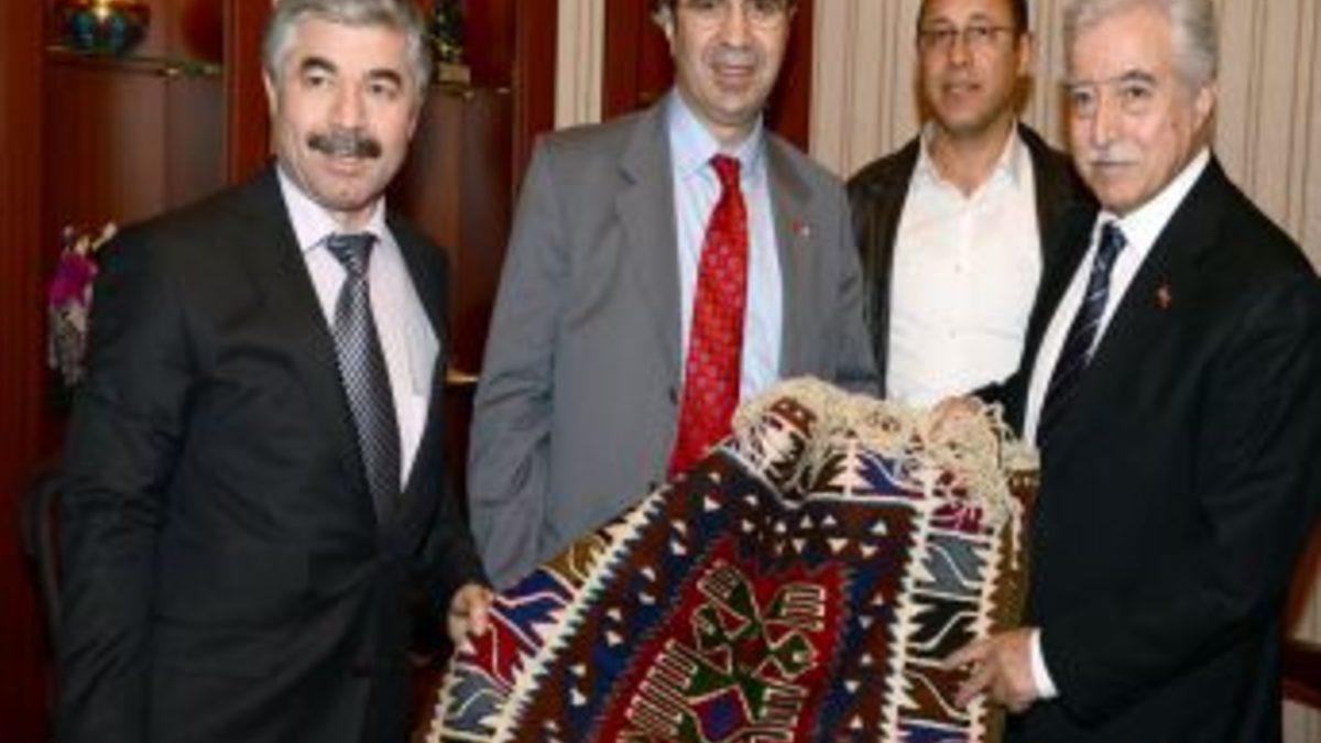 Aldırmaz, ziyarette konuk Ticaret Odası Başkanı’na Toroslara özgü el dokuması kilim hediye etti.