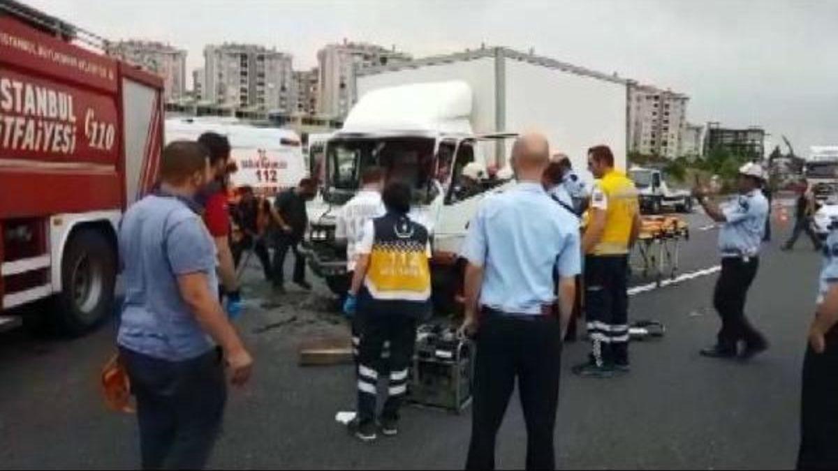 Ersan SAN/ İSTANBUL, (DHA) TEM Otoyolu Esenyurt mevkiinde 2 TIR ile 2 kamyonetin karıştığı zincirleme kaza meydana geldi. Kaza nedeniyle yol