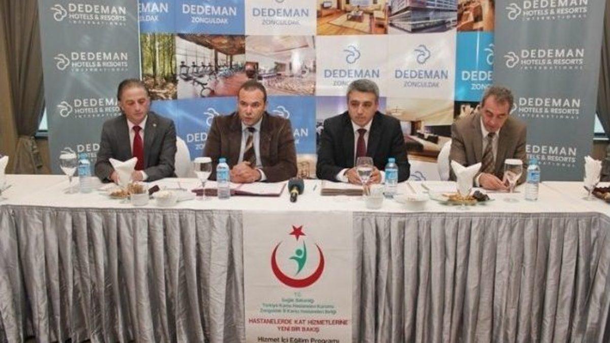 Zonguldak Kamu Hastaneler Birliği Genel Sekreterliği ve Zonguldak Dedeman Otel tarafından temizlik personellerine yönelik ‘Kat Hizmetleri’ eğitim protokolü dün imzalandı.Zonguldak Dedeman Otel tarafından sosyal sorumluluk projesi kapsamında Zonguldak Kamu Hastaneler Birliği Genel Sekreterliği ile 90 gün sürecek personel eğitim programı imzalandı.Dedeman Otel Gelik Toplantı Salonunda gerçekleştirilen toplantıya Dedeman Zonguldak Genel Müdürü Murat Yılmaz Zeren, Kamu Hastaneler Birliği Genel Sekreteri Korkut Eren ve basın mensupları katıldı.Programda ilk olarak konuşan Dedeman Zonguldak Genel Müdürü Murat Yılmaz Zeren, sosyal sorumluluk projesi kapsamında böyle proje yaptıklarını ifade ederek projenin hayırlı olmasını istedi. Ardından konuşan Kamu Hastaneler Birliği Genel Sekreteri Korkut Eren, Atatürk Devlet Hastanesi, Uzunmehmet Göğüs Hastalıkları Hastanesi ve Kadın Doğum Hastanesi’nde kat hizmetleri personelinin Dedeman’nın kurumsal kimliği altında 90 gün boyunca eğitileceğini belirtti.Konuşmaların ardından Dedeman Zonguldak Genel Müdürü Murat Yılmaz Zeren, Kamu Hastaneler Birliği Genel Sekreteri Korkut Eren tarafından protokol imzaladı. İmza protokolüne Tıbbi Hizmetler Başkanı Dr. Bekir Yaylı, İdari Hizmetler Başkanı İhsan Öztunç, Mali Hizmetler Başkanı Hakkı Yıldız, Atatürk Devlet Hastanesi Hastane Yöneticisi Dr. Mustafa Çıtlak, Kadın Doğum Hastanesi Hastane Yöneticisi Dr. Mustafa Özkan Gün, Uzun Mehmet Göğüs ve Meslek Hastalıkları Hastanesi Hastane Yöneticisi Dr. Fatih Akça, Atatürk Devlet Hastanesi Hasta Hizmetleri ve Sağlık Otelciliği Müdürü Serdar Numanoğlu ve Hasta Hizmetleri ve Sağlık Otelciliği Uzmanı Hasret Birinci katıldı.Öte yandan eğitim programı 21 Ekim 2013 tarihinden itibaren start alacak. Eğitimler Dedeman Zonguldak Otel Kat Hizmetleri Müdürü Selçuk Gürkan tarafından verilecek.