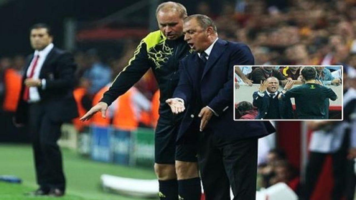 Başarılı hoca birçok kez kendisine ayrılan bölümü geçerek hakem kararlarına itirazlarda bulunurken mücadelenin 4. hakemi sık sık Terim'i uyardı.