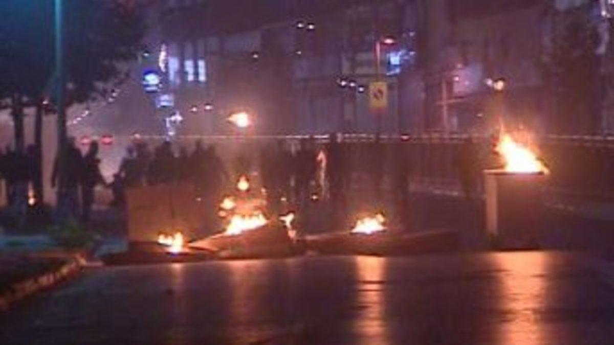 Bölücü terör örgütü sempatizanları Beyoğlu Dolapdere Caddesi’nde toplandı. Yüzlerini maske ile kapatan grup, çöp konteynerleri ile caddeye barikat kurdu. Konteynerleri ateşe veren grup caddeyi de molotof kokteyli yağmuruna tuttu. Bir benzin istasyonuna saldıran grup, benzin pompalarını ateşe verdi. Çevreye gelişigüzel havai fişek atıldı. Polisin olay yerine gelip havaya ateş açması sonucu ara sokaklara kaçan grubun benzin istasyonuna ve çevreye ses bombası da attığı iddia edildi.
