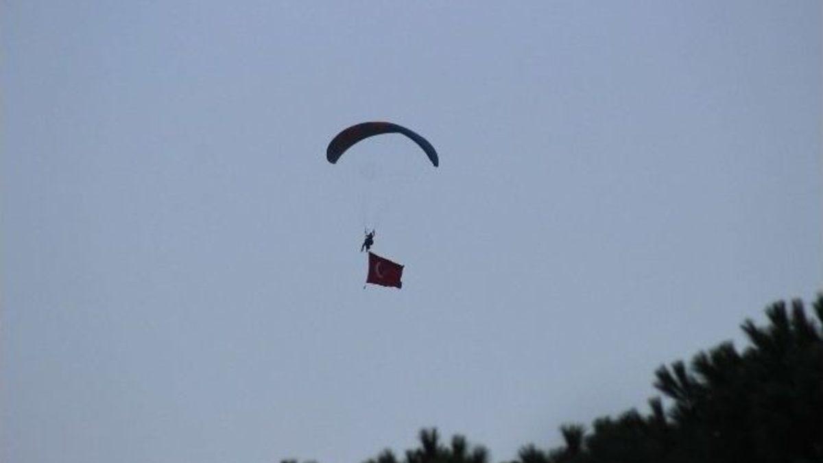 Çanakkale’nin Yenice ilçesinde, bir yamaç paraşütçüsü, terörü kınamak için havada Türk bayrağı açtı.Bir otelin sponsorluğunda...