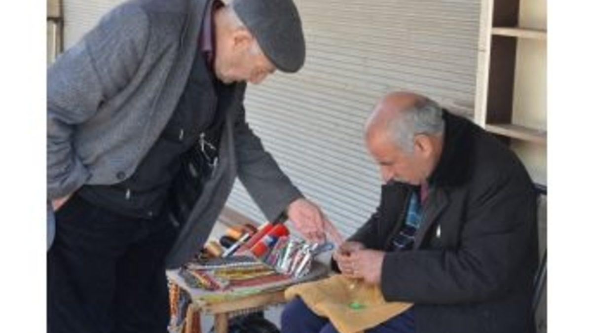Diyarbakır’ın Sur ilçesinde seyyar tezgah üzerinde tesbih taneleri tamiratı yaparak ailesinin geçimini yapan vatandaş, eskisi gibi iş yapamamaktan yakınıyor.Sur ilçesi Dağkapı mevkii Gazi Caddesi üzerinde kaldırıma yerleştirdiği seyyar tezgahı ile dağılan tesbihleri tamir edip, çakmak satan Abdurrahman Badem, bu işle ailesini geçindirdiğini söyledi. Badem, 37 yıl önce başladığı işini hala yaptığını belirterek, eskisi kadar iş yapamamaktan yakındı. Eskiden müşterilerinin çok olduğunu dile getiren Badem, son yıllarda kimsenin tesbih tamiratı yapmamasından dolayı işlerinin bitme noktasına geldiğini ifade etti. Badem, şimdilerde tesbih tamiri için istediği kadar kimsenin tezgahına gelmediğini kaydetti. El yapımı tesbih de yaptığını ifade eden Badem, 1977 yılında başladığı bu mesleğini büyük zorluklarla devam ettirdiğini söyledi.