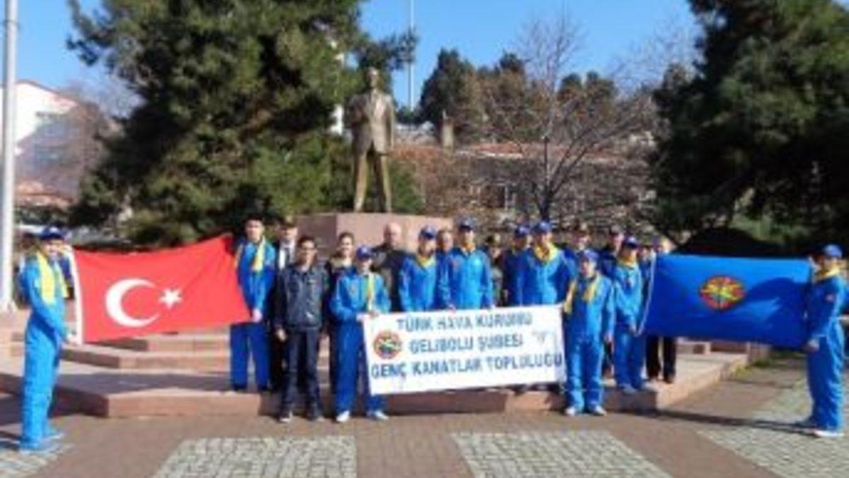 Türk Hava Kurumunun 89.'ci Kuruluş Yıldönümü tüm yurt genelinde olduğu gibi Çanakkale'nin Gelibolu ilçesinde de düzenlenen törenlerle kutlandı.Türk Hava Kurumu Gelibolu Şube Başkanı Servet Ersoy, Yönetim Kurulu üyeleri ve Gelibolu Şubesinin Genç Kanatlar Topluluğunun katılımı ile bir tören düzenlendi. Düzenlenen tören, iskele meydanındaki Atatürk anıtına çelenk konulması, saygı duruşu ve İstiklal Marşının okunmasıyla başladı. Daha sonra, günün anlam ve önemini belirten konuşma Türk Hava Kurumu Gelibolu Şube Başkanı Servet Ersoy tarafından yapıldı. Başkan Ersoy konuşmasında, kuruluşunun 89. yıldönümünün kutlandığı bu günde gururlu olduklarını belirterek, "Yüce Önderimiz Atatürk'ün ‘İstikbal Göklerdedir’ öngörüşüyle kurulan Türk Hava Kurumunun önemini bilen biz, Türk Hava Kurumu Gelibolu Şube Yönetim Kurulu olarak büyük bir özveri ile üzerimize düşen sorumluluğun bilinci ile çalışıyoruz. İlçemizde açtığımız model uçak kurslarımız ile yüzlerce gencimize havacılığı sevdirmiş ve gönüldaşları olmuşlardır. Gelibolu'da bir ilki başararak, işitme engelli öğrencilerimize 2 yıldır verdiğimiz model uçak kursu ile havacılığı bu öğrencilerimize de sevdirmeyi başardık. Okul öğretmenleri Sultan Ünal ve Ümit Nalbant'ında özel ilgileriyle bu öğrencilerimizden oluşan bir Genç Kanatlar gönüllü üyelerini kurduk" dedi. Kuruluş yıldönümü etkinliklerine Gelibolu THK Şbe Başkanı Servet Ersoy, yönetim kurulu üyeleri Dilek Gökalp, İsmail Gürlen ve Ali Riza Çelik katıldı.