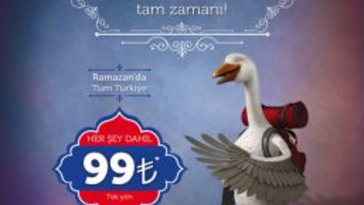 THY Ramazan ayına özel kampanya başlattı. THY yetkililerinin verdiği bilgiye göre yolcular, 09-29 Temmuz 2013 arasında, İstanbul çıkışlı ve varışlı tüm iç hat seferlerinde gerçekleştireceği seyahatlerinde tek yön her şey dahil 99 TL’ye seyahat edebilecek. THY’nin satışa sunduğu kampanya biletlerinden, yolcular Ramazan ayı boyunca faydalanabilecek. Sadece THY seferlerinde uygulanacak kampanya, Anadolujet ortak uçuşlar için geçerli olmayacak. Kampanya biletlerinin satış dönemi 18 Haziran- 29 Temmuz tarihleri arası yapılacak. THY’nin web sitesinden satın alınacak biletlerde ise tek yön her şey dahil 94 TL olarak ücretlendirildi.
