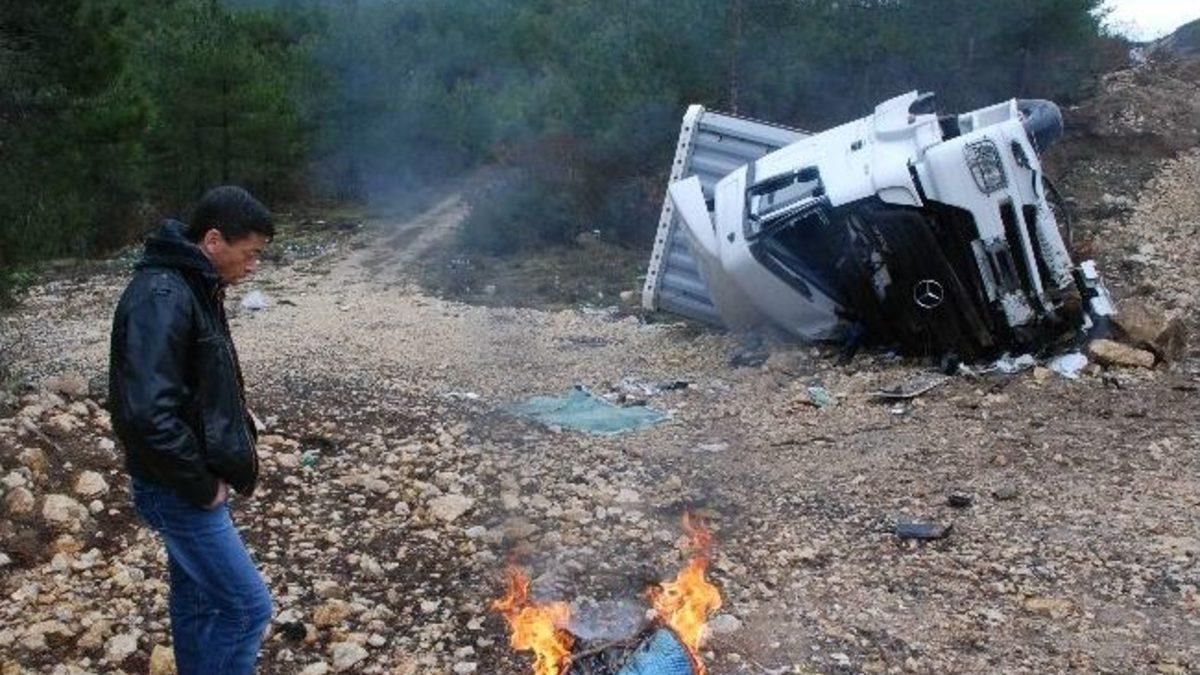 Edinilen bilgiye göre, Erzurum'dan Çankırı'ya giden Ali Günay idaresindeki 06 SAM 51 plakalı TIR Tokat'ın Erbaa ilçesi D-100 Karayolu Karanlık Dere mevkisinde yağışlı hava nedeniyle kontrolden çıkarak şarampole uçtu. Yan yatan TIR'ın sürücü kabininde sıkışan Günay, Erbaa Belediyesi itfaiye ekipleri ve 112 ekiplerince kurtarıldı. Erbaa Devlet Hastanesi'ne kaldırılan şoförün genel sağlık durumunun iyi olduğu bildirildi. Başka bir TIR'la olay yerinden geçen Turgut Görkem ise arkadaşının aracının başından ayrılmadı. TIR'ın bir çekici vasıtası ile olay yerinden kaldırılması bekleniyor.