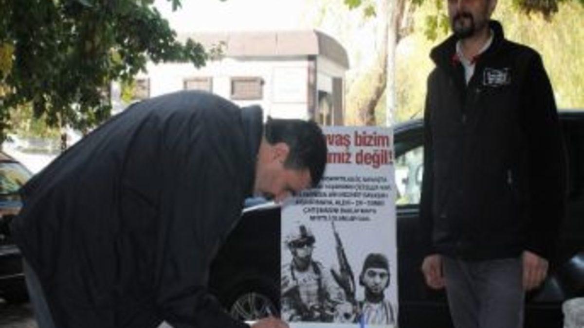 Kırşehir’de caddelerde açılan stantlarla ‘İmza verin bu savaş bizim savaşımız değil’ kampanyasına destek istendi.
