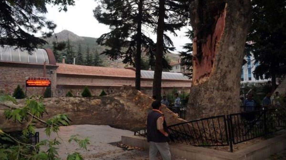 Mustafa TURAPOĞLU/TOKAT, Tokat'ta akşam saatlerine doğru etkili olan fırtına, hayatı olumsuz etkiledi. Fırtına nedeniyle dışarıda olanlar, yürümekte zorluk yaşadı. Ayrıca kentte çok sayıda ağaç devrildi. Meydan cami avlusundaki asırlık çınar ağacının bir dalı fırtınaya dayanamayarak koptu. Kopan yaklaşık 50 metre uzunluğunda dalın uç kısmı yola devrildi. Şans eseri o sırada avluda kimsenin olmaması olası bir kazayı önledi. Kopan ağaç dalının çevresinde toplananlar, cep telefonları ile görüntüledi. Kopan ağaç dalının kaldırılması için belediye ekipleri tarafından çalışma başlatıldı.