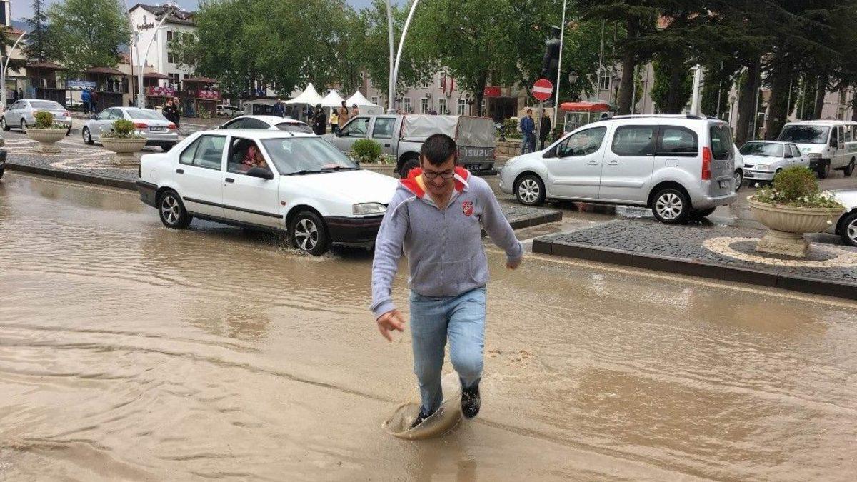 Tokat’ta akşam saatlerinden itibaren etkisini gösteren sağanak yağış, caddeleri adeta göle çevirdi.Yaklaşık 15 dakika etkili olan sağanak yağış kent merkezinde başta Gaziosmanpaşa Bulvarı olmak üzere bazı noktalarda ulaşımı durma noktasına getirdi. Cumhuriyet Meydanı’ndaki kavşak civarında biriken yağmur suları, yaya ve sürücülere zor anlar yaşattı. Bazı vatandaşlar yağmur sularının getirdiği yaprak ve dal parçalarını kaldırımlardan süpürürken, bazı vatandaşlar ise ender yaşanan bu durumu fotoğrafladı.Şakir Şeker adlı vatandaş, ufak tefek sıkıntılar yaşansa da yağışların bir tarım kenti olan Tokat için önemli olduğunu belirterek, "Bereket yağıyor. Millet hep yağmur duasına çıkıyor. Arayan bulamıyor böyle yağmurları" dedi.