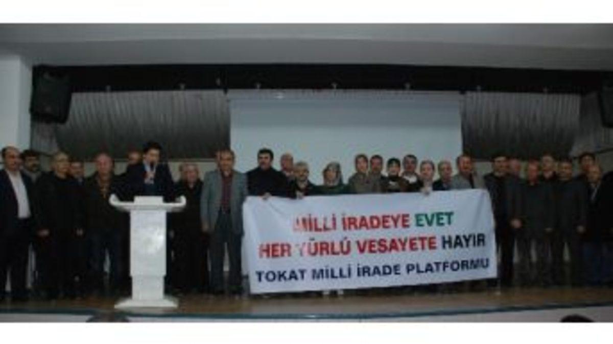 Tokat’ta 69 sivil toplum kuruluşunun katılımı ile düzenlenen programda Başbakan Recep Tayyip Erdoğan’a destek verildi.Tokat Belediyesi Nikah Salonu’nda, Milli İradeye Saygı Platformu tarafından düzenlenen basın açıklamasına çok sayıda vatandaş katıldı. Platform adına basın açıklamasını Muzaffer Katar, platforma destek veren sivil toplum örgütü temsilcileri ile birlikte yaptı. Katar, 17 Aralık 2013 tarihinde başlayan operasyon sürecinin geldiği noktanın artık Türkiye adına endişe verici boyutlara ulaştığını söyledi. Bir “yolsuzluk operasyonu” başlığıyla ortaya çıkıp bir anda ülke gündeminin en önemli maddesi haline gelen operasyonların masum bir hukuksal süreç olmadığının ortaya çıktığını ileri süren Katar, “Birbiriyle ilgisi olmayan ayrı ayrı olaylar, aynı anda gündeme getirilerek ülkenin seçilmiş meşru hükümetini sarsmayı ve yıkmayı amaçlayan bir küresel proje adım adım sahnelenmektedir. Son 11 yılda ciddi bir değişim yaşayan Türkiye’ye makas değiştirtmeyi amaçlayan iç ve dış odaklar; Danıştay saldırısıyla, 27 Nisan muhtırasıyla, Gezi provokasyonuyla yakalayamadığı yıkım zeminini, 17 Aralık operasyon süreciyle yakalamaya çalışmaktadır. Küresel güçlerin ‘ezik ve zayıf Türkiye’ projesine hizmet etmeyeceğiz. Bu küresel ihanet projesine taşeronluk yapan içimizdeki işbirlikçi yapıları da asla affetmeyeceğiz” dedi.Katar, yaşananları ihanet olarak değerlendirerek, “Hak ve özgürlükler alanında bunca kazanımlar sağlanmışken, memleketimizin doğusuyla batısı bir barış ve kucaklaşma sürecine girmişken, ekonomik göstergeler ve büyüme hızı dünyanın imrendiği bir trend yakalamışken, ülkenin tekerine çomak sokmak, bilmeden yapılırsa gaflet, bilerek yapılırsa kelimenin tam anlamıyla ihanettir. Bu süreçte bugüne kadar sessizliği tercih eden biz sivil toplum örgütleri, kendimizi memleketin huzuru ve kardeşliği konusunda birinci derecede sorumlu hissetmemizden dolayı fitne ateşine odun taşımaktan özellikle geri durmaya gayret gösterdik. Ancak meselenin yolsuzluk olmadığının açıkça ortaya çıkması ve sürecin bir devlet krizine, bir ekonomik krize doğru götürülmek istenmesi üzerine artık bir ‘dur’ deme vaktinin geldiğine karar vermiş bulunuyoruz. Tokat Milli İrade Platformu olarak, bu açıklamamızla birlikte eylem sürecini başlatıyoruz. Memleketimizde oynanan oyunun farkındayız ve millet olarak hiçbir kazanımımızdan vazgeçmeyeceğiz” diye konuştu.