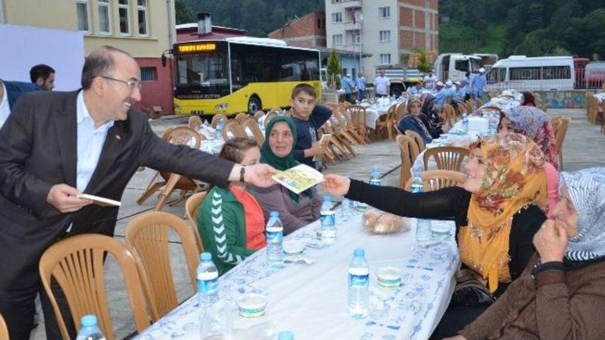 Trabzon Büyükşehir Belediyesi’nin Tonya’da düzenlediği iftar organizasyonunda konuşan Büyükşehir Belediye Başkanı Dr. Orhan Fevzi Gümrükçüoğlu, Trabzon’un yakın zamanda büyükşehir olmanın faydalarını fazlası ile göreceğini ifade etti.Tonya Şehit Ayhan Güner İlkokulu’nun bahçesinde gerçekleştirilen açık hava iftarında Trabzon Büyükşehir Belediye Başkanı Dr. Orhan Fevzi Gümrükçüoğlu’nun yanı sıra Tonya Kaymakam vekili Zihni Yıldızhan, Tonya Belediye Başkanı Osman Beşel, mahalle muhtarları, siyasiler, kamu kurum ve kuruluşlarının yöneticileri, STÖ temsilcileri ve vatandaşlar hazır bulundu.Yüzlerce kişinin katıldığı iftarın ardından Tonyalılara seslenen Başkan Gümrükçüoğlu, Trabzon’un huzur içinde bir Ramazan geçirdiğini ifade ederken, Gazze’de gerçekleştirdiği katliamdan dolayı İsrail’i kınadı ve İslam dünyasının bir ve beraber olarak hareket etmesi gerektiğine parmak bastı.Büyükşehir statüsüne kavuşan Trabzon’da yapılanma çalışmalarının sürdürüldüğünü ifade eden Gümrükçüoğlu bu konuda şunları kaydetti: “Yapılanma çalışmalarımız yılbaşına kadar sürecektir. Bu süre zarfında aciliyeti olan işlere öncelik veriyoruz. İnşallah yılbaşından sonra Trabzon'umuzun her köşesi büyükşehir olmanın faydasını fazlası ile görecektir.”Vatandaşların yoğun ilgi gösterdiği iftar programı Tonya Müftüsü Ebubekir Bayrak’ın gerçekleştirdiği yemek duası ile son buldu. Başkan Gümrükçüoğlu iftarın ardından Tonya ilçe merkezinde uzun süre vatandaşlarla sohbet etti.