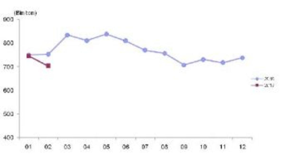 – Ticari süt işletmelerince üreticilerden toplanan inek sütünün miktarı Şubat ayında, geçen yılın aynı dönemine göre yüzde 6.6 azalışla 703 bin tona geriledi.