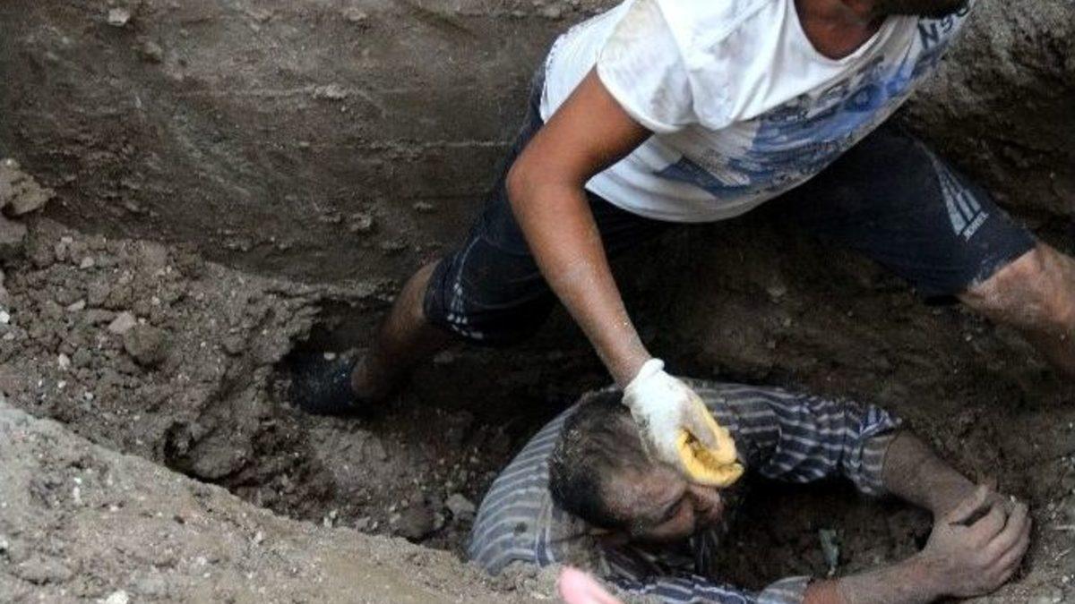 Karabük’te bir inşaatın elektrik kablosunu döşeyen bir işçi, kayan toprağın altında kaldı. Beline kadar toprak altında kalan işçi, 2 saat süren çalışma sonrası kurtarıldı.Olay, Bahçelievler Mahallesi 148 Nolu Sokak’ta yapımı devam eden 5 katlı bir apartmanın inşaatında meydana geldi. Ahmet Erdoğan, apartman ile istinat duvarı arasında elektrik kablosu döşemek için kazılan yaklaşık 2 metre derinliğindeki kanalda çalıştığı sırada göçük oluştu. Beline kadar toprağa gömülen Erdoğan’ı gören arkadaşları yardım istedi. Bunun üzerine olay yerine AFAD ve itfaiye ekipleri sevk edildi. Erdoğan’ı kurtarmak için başlatılan çalışmalarda dolgu toprağın kaymaması için küreklerle ve tahtalarla set oluşturuldu. İşçilerin elleriyle kazdığı toprak daha sonra kepçe ile dikkatli bir şekilde kazıldı. Son olarak ayakları çıkartıldıktan sonra kepçeye konan Erdoğan, arkadaşlarının ve kurtarma ekiplerinin yaklaşık 2 saat süren çalışması sonucu kurtarıldı. Olay yerinde hazır bekletilen sağlık ekiplerinin ilk müdahalesinin ardından ambulansla Karabük Eğitim ve Araştırma Hastanesi’ne kaldırılan Ahmet Erdoğan’ın sağlık durumunun iyi olduğu belirtildi. Olayla ilgili soruşturma başlatıldı.