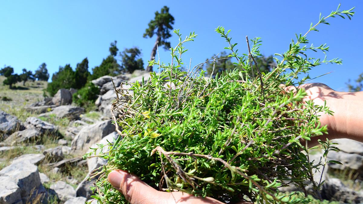 Yüksek rakımlı Göktepe Yaylası'nda taşların arasından çıkan kekikleri toplayarak kışın yemeklerde ve hastalıklarda içecek olarak kullandıklarını belirten Çatlı, "Taş kekiği ismi gibi taşların arasında oluşur. Buranın rakımı bin 800 metredir. Bazı vatandaşlar kekiğin bağını 10 liraya satıyorlar. Çok faydalı bir bitkidir şifa kaynağıdır. Yakınlarımıza ve akrabalarımıza veriyoruz. Pazarda kekiğin demetini 50 liraya satıyorlar. Ayrıca çok güzel çayı yapılır. Kış aylarında çayını yapar içeriz" dedi.