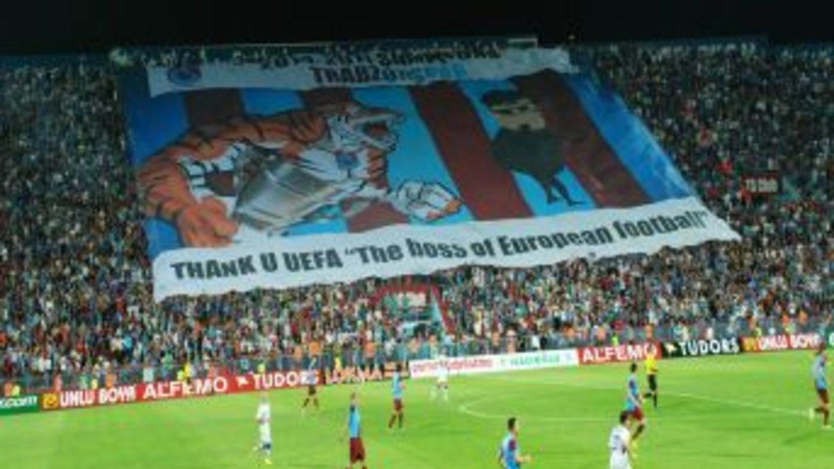 UEFA Avrupa Ligi 3. Ön Eleme Turu rövanşında Dinamo Minsk ile Avni Aker’de karşılaşan Trabzonspor’da bordo-mavili taraftarlar karşılaşmanın 61. dakikasında tribünlerde açtığı pankart ile dikkat çekti.Maraton tribününde açılan pankartta “2010-2011 Yılı Şampiyonu Trabzonspor”, “Thank u UEFA the boss European football” yazıları ve takımın sembolü olan bir kaplanın elindeki Süper Lig kupası yer aldı.