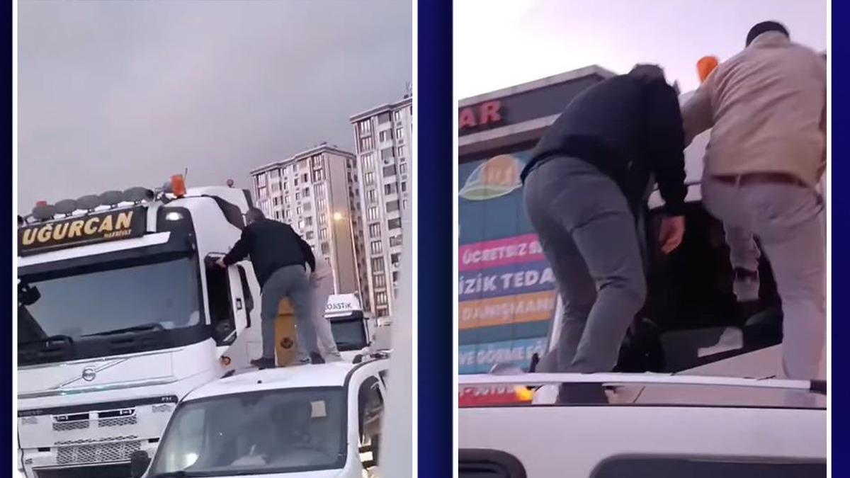 Tır şoförüne tekmelerle saldıran şahısların o anlar ise bir vatandaşın cep telefonunu kamerasına yansıdı. Trafik akışı kilitlenirken video kısa sürede sosyal medyada infial yarattı.