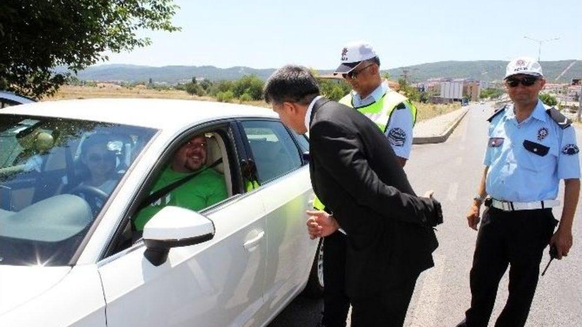 Ramazan Bayramı nedeniyle Türkiye’nin birçok ilinden araçları ile Muğla’ya tatile gelen vatandaşlar, bayramın birinci günü Muğla Emniyet Müdürlüğü Bölge Trafik Denetleme Şube Müdürlüğü ekipleri tarafından bayram şekeri ve kolonya ikram edildi.Bölge Trafik Denetleme Şube Müdürü İlhami Doğangüzel başta olmak üzere trafik ekipleri Muğla’ya araçları ile giriş yapan sürücülere şeker ve kolonya ikram ettiler. Bölge Trafik Denetleme Şube Müdürü İlhami Doğangüzel, sürücülerin bayramlarını kutlarken, araç sürücülerine dikkatli araç kullanmaları yönünde uyarılarda bulundu.Bölge Trafik Denetleme Şube Müdürü Doğangüzel, “Karayolu üzerinde seyir halinde olan bütün vatandaşlarımıza kazasız günler diliyorum. Muğla Emniyet Müdürlüğü Bölge Trafik Denetleme Şube Müdürlüğü olarak aldığımız ek tedbirler ve düzenlemeler ile bu bayramın şeker tadında geçmesini istiyorum. Bu amaçla ek görevlendirmelerimiz de dahil olmak üzere radar uygulamalarımızın yanında vatandaşlarımıza bilgilendirme yönündeki çalışmalarımız da devam edecek. İlimiz Türkiye’nin en önemli turizm destinasyonlarının başında gelmektedir. Bu nedenle özellikle Bodrum istikametinde bir trafik hareketliliği gözlemliyoruz. Ancak aldığımız tedbirler ile şu ana kadar önemli bir kaza meydana gelmedi. İnşallah bu bayram tatilini kazasız belasız atlatırız” dedi.