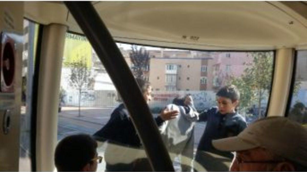Eskişehir’de tramvay tamponuna asılan ve düşmemek için birbirlerine güçlükle tutunan çocuklar, adeta kazaya davetiye çıkardı.Eskişehirli vatandaşların yoğun olarak kullandığı toplu taşıma araçlarından tramvaylarda her gün ortalama binlerce kişi seyahat ediyor. Kentin merkezi caddelerinden geçen tramvaylar, bir yandan ulaşım konusunda insanlara büyük kolaylık sağlarken, diğer yandan ise, dikkatsiz sürücü veya yayalar sebebi ile kazalara karışıyor.İsmet İnönü Caddesi üzerinde seyir halinde bulunan bir tramvayın tamponuna çıkan 3 çocuk, yaptıkları tehlikeli hareketler ile adeta yürekleri ağza getirdi. Ray üzerinde ilerleyen tramvayın arkasından koşarak tutunup, ardından tamponuna çıkan çocuklar, kazaya davetiye çıkararak metrelerce bu şekilde yolculuk yaptı. Yaptıkları tehlikeli yolculuk sırasında, çocuklardan biri dengesini kaybedince, yanında bulunan arkadaşının kapüşonundan sıkıca tutması üzerine düşmekten son anda kurtuldu. Birkaç durak sonra tramvaydan atlayan çocuklar kaçarak gözden kayboldu.Öte yandan, tramvay içinde yolculuk yapan vatandaşlar ise, aracın arka kısmını gösteren kameranın olmamasına tepki göstererek, asılan çocukları vatmanın göremediğini ve çocukların düşmesi durumunda hesabını kimin vereceğine dair sitem etti.