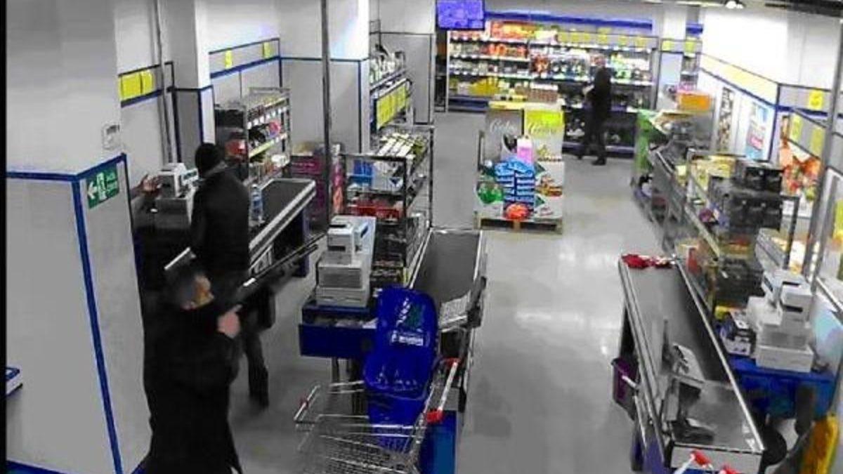 Kemal ATLAN/ ESKİŞEHİR, Olay dün akşam saatlerinde Alanönü Mahallesi Hicri Sezen Caddesi'ndeki bir markette meydana geldi. Boyunlarındaki atkıyla yüzlerinin bir bölümü kapatan 2 kişiden biri paltosunun altına gizlediği pompalı tüfeği çıkartıp kasiyer T.Ç.'ye doğrulttu. Şüpheliler daha sonra kasada bulunan 1940 lira parayı alıp kaçtı.