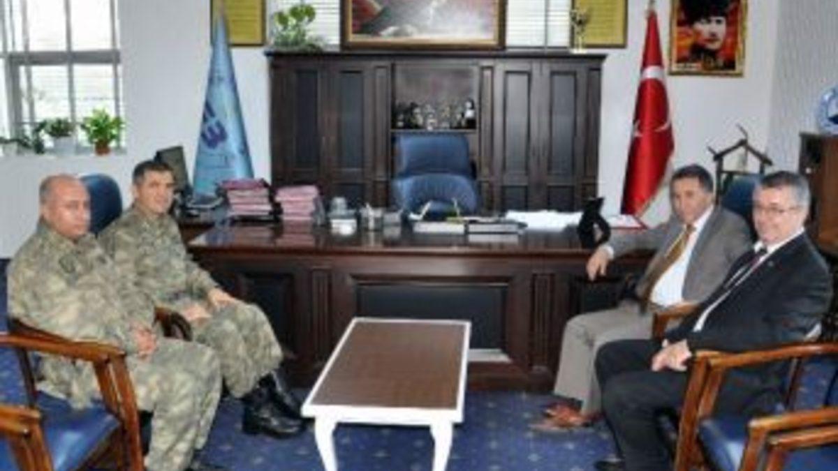Edremit 19. Motorlu Piyade Tugayı ve Garnizon Komutanı Tuğgeneral Mehmet Topçu, Edremit Belediye Başkanı Kamil Saka’yı makamında ziyaret ederek konutuna yapılan saldırı nedeniyle geçmiş olsun dileğinde bulundu.Edremit 19. Motorlu Piyade Tugayı ve Garnizon Komutanı Tuğgeneral Mehmet Topçu, beraberinde 19 Piyade Tugayı Kurmay Başkanı Kurmay Albay Musa Turhan ile birlikte Edremit Belediye Başkanı Kamil Saka’yı makamında ziyaret etti. Tugay Komutanı Tuğgeneral Mehmet Topçu, Belediye Başkanı Kamil Saka’ya geçtiğimiz hafta Akçay Mahallesi’nde ikamet ettiği konutuna yapılan silahlı saldırı nedeniyle geçmiş olsun dileklerini iletti. Edremit Belediye Başkanı Kamil Saka’da ziyaret nedeniyle teşekkür ederek, Edremit’in adının bu tür konular ile anılmasını istemediğini kaydetti. Başkan Saka“Bizler yasalar çerçevesinde hizmet etmeye, hiç kimseden çekinmeden Edremit halkının malını sadece Edremitlilerden yana kullanmaya devam edeceğiz” dedi. Ziyarette Belediye Başkan Yardımcısı Mehmet Ertaş’da hazır bulundu.