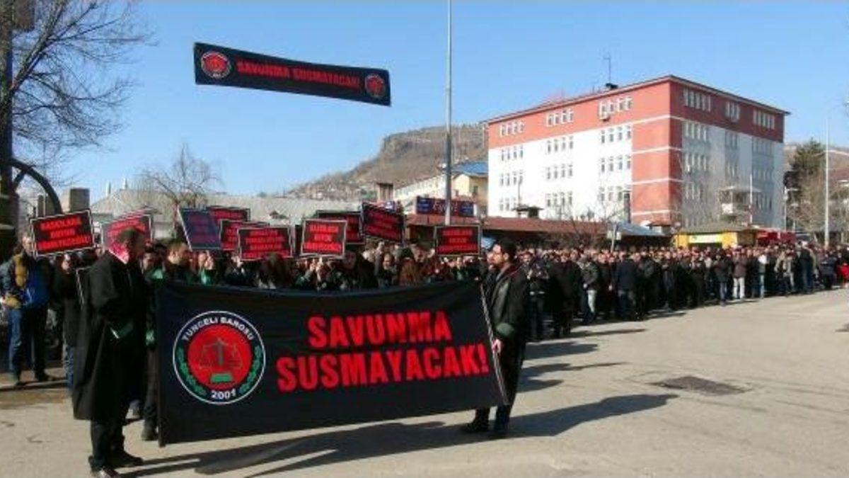 Ferit DEMİR/TUNCELİ, Sanat Sokak'ta başlayan ve avukatların cüppeleriyle katıldığı yürüyüşte 'Savunma susmayacak' yazılı pankart taşındı, ıslık ve düdük çalındı. Protestocular Cumhuriyet Meydanı'na geldiklerinde 5 dakikalık oturma eylemi yaparak karayolunu çift taraflı trafiğe kapattı. 'Baro başkanı yalnız değil', 'Tunceli barosu hukuksuzluğa karşı' sloganları atan protestocular daha sonra Seyit Rıza Meydanı'na yürüdü.
