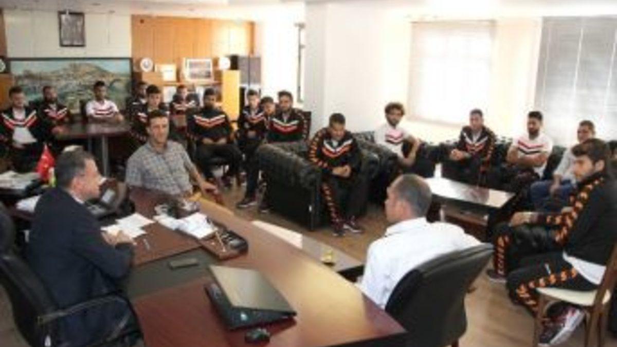 Türkiye Futbol Federasyonu BAL Ligi 5.’ci grupta mücadele eden Medcem Silifke Belediyespor bu hafta sonu oynayacağı Osmaniyespor maçı öncesi futbolcular, Teknik Direktör İnan Uçal, Futbol Şube Sorumlusu Murat Araycı, Belediye Başkanı Dr. Mustafa Turgut’u makamında ziyaret ederek, desteklerinden dolayı teşekkür etti.Ziyaretten duyduğu memnuniyeti dile getiren Belediye Başkanı Dr. Mustafa Turgut, “Takımımızı hiçbir zaman yalnız bırakmıyorum. Bütün maçlara fırsat buldukça gidiyor, yakından takip ediyorum. Takımımızı yalnız bırakmayan ve desteklerini hiçbir zaman esirgemeyen taraftarlarımıza ve Silifke halkına da çok teşekkür ediyorum. Şuan Belediyespor takımımız 12 puanla ikincilik koltuğuna oturdu. Bu hafta lider Osmaniyespor’a konuk olacağız. İnşallah bu maçı da alacağız. Sizler bizim yüzümüzü güldürüyorsunuz. Sizlerle ne kadar övünsek azdır. Şampiyonluk yolunda emin adımlarla ilerleyen takımımızın oyuncularını, teknik heyetini ve yöneticilerini tebrik ediyor, başarılarının devamını diliyorum” dedi.Teknik Direktör İnan Uçal bu hafta önemli bir maça çıkacaklarını belirterek, “Artık bizim için kolay maç yoktur. Her maçımıza şampiyonluk maçına çıkar gibi çıkacağız. Hedefimiz her zaman ki gibi iyi futbol. Bizim takımımızın kalitesi belli. İyi bir ortamımız mevcut. Tecrübeli futbolcuların yanında genç oyunlarımızı monte ettik ve gayet iyi bir durumdayız. Kimse mağlup olmak için sahaya çıkmaz. Bizimde hedefimiz galibiyet. Bu hafta biz oynayacağımız maça normal bir maç gözü ile bakıyoruz. Biz deplasmanlarda daha dirençli ve daha rahat oynuyoruz. Oyuncularımıza bu maçın önemini anlatıyoruz ancak normal bir maç gibi görmeleri gerektiğini ve asla saha dışı ve saha içerisinde yapılacak tahriklere kapılmamaları gerektiğini söylüyoruz. Ben şahsım adına ortam gerilmediği sürece rahat ve güzel bir maç olacağına inanıyorum. Başta da söylediğim gibi hedefimiz üç puan. Yenemiyorsak ta yenilmek istemiyoruz. Çünkü grupta herkesin puanı birbirine çok yakın. Üç puan aldığımız takdirde üst sıralarda kalırız ve alt sıralarda olan takımlarla puan farkını açma imkanımız olur” dedi.Futbol Şube Sorumlusu Murat Araycı ise bu hafta Osmaniyespor ile oynayacakları maçı kafalarında büyütmemeleri gerektiğini belirterek, "Onlara saygı duyuyoruz ama bizimde onlar gibi hedeflerimiz var. Futbol olarak gün geçtikçe iyiye gittiğimize inanıyorum. Biz sahaya çıktığımızda mücadelemizi sonuna kadar veriyoruz. Kiminle nerede ne zaman oynamıştık önemi yok bu ligde oynuyorsa herkes birbirine eşittir. Mutlaka bir takım ötekinden üstündür ama bu sadece kağıt üzerinde. Takımda ilk başlarda gelen çok olduğu için uyum problemi yaşadık. Ama şuan durumumuz iyi genç arkadaşlarla maç oynadıkça kaynaşmaya başladık. Arkadaşlara her zaman futbolu daha basit oynamaları gerektiğini söylüyoruz. Çıkıp mücadelemizi verdiğimiz sürece en azından yenilmeyiz. Bu haftaki Osmaniyespor maçı önemli ama dünyanın sonu değil. Seyirci faktörünü kimse kafasına takmamalı. Baskı altına almaya çalışacaklar hem bizi hem hakemi. Hem hakem hem biz baskı altında kalmazsak bu maçtan puan veyahut puanlarla ayrılabiliriz” diye konuştu.