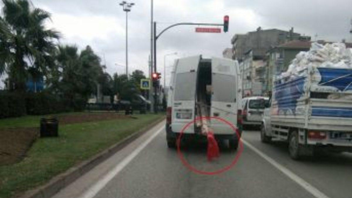 Samsun’da bir kişi aracından dışarı uzanan tahtaların ucuna Türk bayrağı bağlayarak yerde sürüklenmesine sebep olan araç sürücüsü hakkında savcılığa suç duyurusunda bulundu.Olay, Samsun’un Canik ilçesi Atatürk Bulvarı üzerinde meydana geldi. Edinilen bilgiye göre, bir minibüs sürücüsü aracının arka kısmına yerleştirdiği ancak dışarı sarkan tahta parçaları üzerine arkadan gelen araçların çarpmaması için Türk bayrağı taktı. Seyir halindeki araçtan yere doğru uzanan tahta parçasının ucundaki Türk bayrağı yerde sürüklendiğini gören bir kişi bunu sosyal paylaşım sitesi üzerinden paylaştı ve tepki gösterdi. Bunu göre Sami G. adlı vatandaş söz konusu fotoğrafı alarak Samsun Cumhuriyet Savcılığına giderek araç sürücü hakkında şikayette bulundu. Sami G., Türk bayrağı uğruna nice şehitler verildiğini belirterek, yapılan bu saygısızlığa dayanamadığını söyledi.