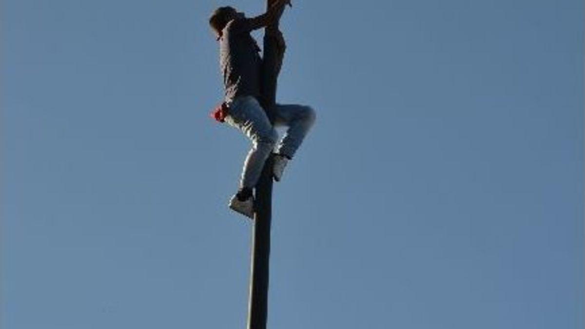 Çorlu Atatürk Meydanında bulunan kalabalığın arasından çıkan genç elindeki Türk Bayrağı ile 30 metre uzunluğundaki cadde aydınlatma direğine tırmandı. Direğin en üst noktasın kadar ulaşan genç elindeki Türk Bayrağını sallayarak meydanda toplanan kalabalıktan büyük alkış aldı. Yapmış olduğu bu tehlikeli hareket sonrası bir hışımda 30 metre uzunluğundaki direkten inen genç, daha sonra kalabalığın arasına karışarak protestosuna devam etti.
