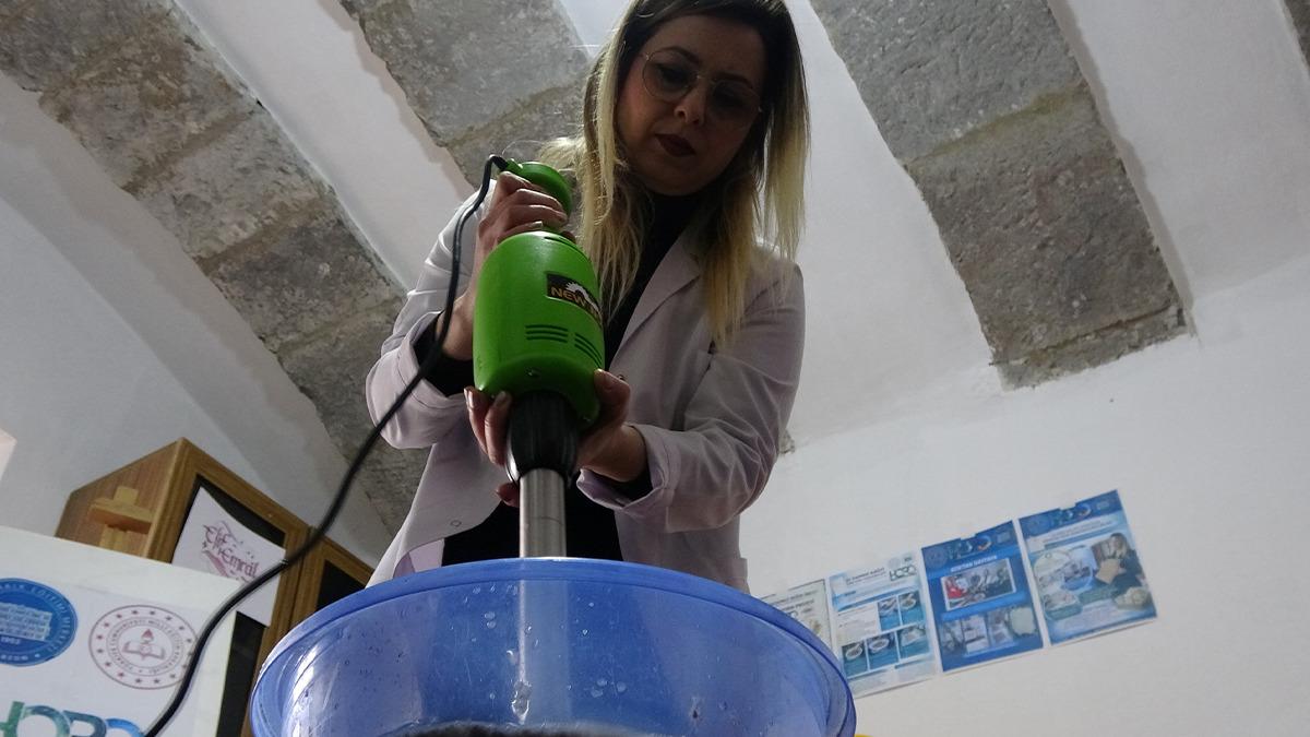 Trabzon Ortahisar Halk Eğitim Merkezi bünyesinde bulunan Alacahan’da düzenlenen proje kapsamında geri dönüşüm materyallerinden kağıt üretimi uygulamalı olarak öğretiliyor.