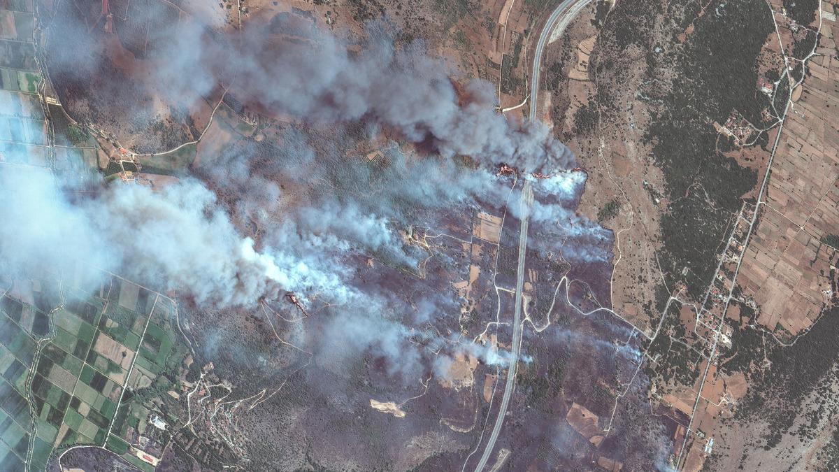 Avrupa Birliği'ne ait Copernicus uydusunun çektiği görüntüde ise Çanakkale'deki orman yangınının ardından bölgede oluşan yangın izi görülüyor.