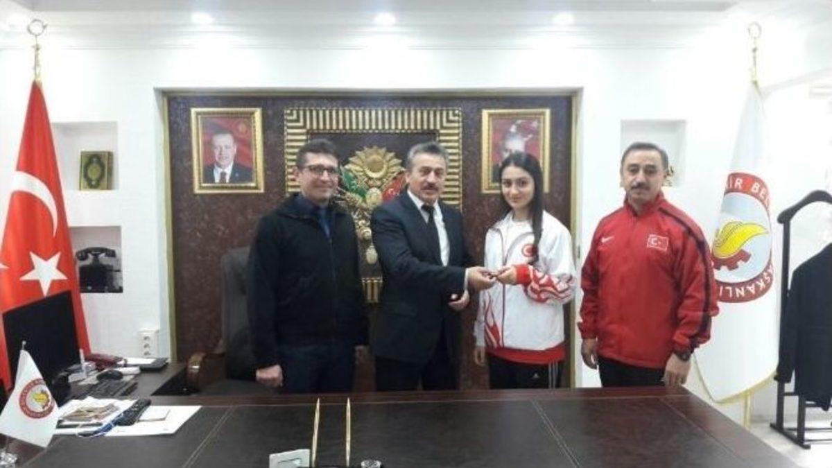 Konya’nın Seydişehir İlçe Belediyesi Başkanı Mehmet Tutal, Seydişehir Belediyesi Spor Kulübü Karate Sporcusu Türkiye İkincisi Arzu Firdevs Koç’a elde ettiği başarıdan ötürü tebrik ederek sporcuyu çeyrek altınla ödüllendirdi.Aydın Kuşadası’nda yapılan 21 yaş altı Türkiye Karate Şampiyonasında rakibi ile yaptığı müsabakayı yenilerek Türkiye İkinciliğine elde eden Seydişehir Belediyesi Spor Kulübü Karate sporcusu Arzu Firdevs Koç ve antrenörleri Ali Osman Güler ve Ali Buğdaycı ile birlikte Seydişehir Belediye Başkanı Mehmet Tutal’ı ziyaret etti. Başkan Tutal, Seydişehir Belediyesi Spor Kulübü Karate Sporcusu Türkiye İkincisi Arzu Firdevs Koç’a elde ettiği başarıdan ötürü tebrik ederek sporcuyu çeyrek altınla ödüllendirdi.Başkan Tutal; "Kuşadası’nda düzenlenen 21 yaş altı Türkiye Şampiyonası’nda şehrimize ve ilçemize İkincilik kazandıran sporcumuzla gurur duyduk. Kendisine teşekkür ediyorum. Antrenörlerimiz Güler ve Buğdaycı’ya yetenekli, disiplinli ve güzel ahlaklı, başarılı bir sporcu yetiştirdikleri için teşekkür ediyorum "dedi.“Spora ve sporcuya desteğimiz devam edecek”Spora ve sporcuya olan desteklerinin devam edeceğini ifade eden Belediye Başkanı Mehmet Tutal, "Seydişehir Belediyesi olarak spora önem veriyoruz. Spor, çocuk ve gençlerimiz için çok önemli. Geleceğimizin teminatı olan gençlerimiz için kırsal ve merkez mahallerimizde spor tesisleri ve alanları kazandırıyoruz" şeklinde konuştu.