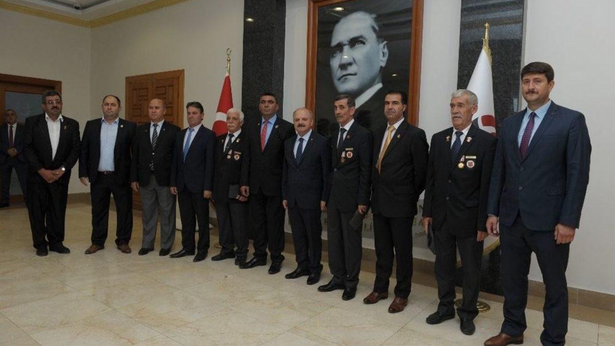 Türkiye Muharip Gaziler Derneği Şube Başkanı Ertuğrul Özkütük, Şehit Dul ve Yetimleri Derneği Başkanı Hacı Şahin ve beraberlerindeki heyet 19 Eylül Gaziler Günü programı kapsamında, Eskişehir Valisi Özdemir Çakacak’ı makamında ziyaret etti.Nazik ziyaretten duyduğu memnuniyeti dile getiren Vali Çakacak, “Biz, bugün bu topraklar içerisinde özgürce yaşıyor ve şanlı bayrağımızı gönderde dalgalandırabiliyorsak, bu aziz şehitlerimiz ve kahraman gazilerimiz sayesindedir. Aziz şehitlerimize, kahraman gazilerimize; minnet borçluyuz, şükran borçluyuz. Bugün 19 Eylül Gaziler Günü ve hepinizin malumudur ki, bugün Cumhuriyetimizin kurucusu Büyük Önder Gazi Mustafa Kemal Atatürk’e Sakarya Zaferi’nden sonra Türkiye Büyük Millet Meclisi tarafından mareşallik rütbesi ve gazilik unvanı verildi. Bu itibarla, bu tarih gaziler günü olarak kutlanmaktadır” diye belirtti.Ataların bu topraklara nasıl sahip çıktığını da anlatan Vali Çakacak, Türk Milletinin şanlı tarihinden bahsederek, konuşmasını şu şeklide sürdürdü:“Şanlı tarihimize baktığımızda vatanımızın muhafazası için, geleceğimiz için, değerlerimiz için yüce milletimiz en kutsal varlığı olan canını feda etmekten hiçbir zaman çekinmemiştir. Söz konusu vatan olduğunda her şeyi bir kenara bırakıp, ölürsem şehit, kalırsam gazi olurum inancıyla, o iradeyle her türlü zorlukların üstesinden gelmiş ve bizlere emanet edilen bu topraklara hep sahip çıkmıştır. Bizden önce atalarımız bu cennet vatana nasıl sahip çıktıysa, bugün de bizler, bize emanet edilen bu vatanı en iyi şekilde gelecek kuşaklara emanet edeceğiz. Ben, ‘19 Eylül Gaziler Günü’ vesilesiyle başta Cumhuriyetimizin Kurucusu Gazi Mustafa Kemal Atatürk ve silah arkadaşlarını, aziz şehitlerimizi, kahraman gazilerimizi bir kez daha saygıyla yad ediyor, Allah kimseyi vatansız bırakmasın diyorum.”Ziyareti kabulden dolayı Vali Çakacak’a teşekkür eden Türkiye Muharip Gaziler Derneği Şube Başkanı Ertuğrul Özkütük ise, vatanın bütünlüğünün korunması, birlik ve beraberliğimizin bozulmaması için üzerlerine bir görev düşerse seve seve yapmaya hazır olduklarını söyledi.