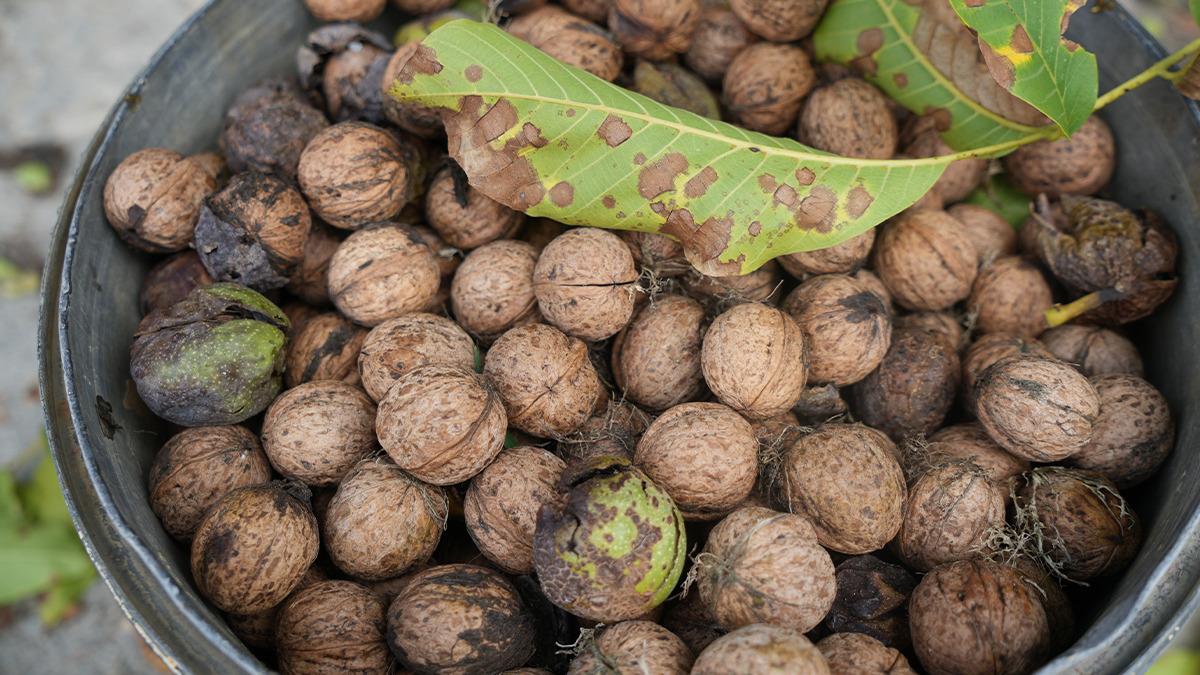 Vatandaşlar, yaklaşık 10-15 metre yüksekliğe sahip ceviz ağaçlarına tırmanmak için tahta merdivenler ve ipler kullanıyor. Köylüler, ellerindeki uzun sırıklarla dallara vurarak, toprağa ve yaprakların arasına düşen cevizleri kovalara dolduruyor.