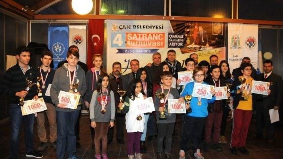 2 Şubat Salı günü açılış töreni ile başlayan ve 4 gün boyunca Menderes Parkı Cam Mekan’da gerçekleştirilen, Çan Belediyesi 4. Satranç Turnuvalarında, yapılan son maçların ardından, ödüller sahiplerini buldu.Düzenlenen ödül törenine Çan Belediye Başkan Vekili Şevki Demir, AK Parti Çan İlçe Başkan Yardımcısı Murat Okan, İl Genel Meclis Üyeleri, Belediye Meclis Üyeleri, AK Parti Çan İlçe Yönetimi ile turnuvaya katılan tüm sporcular ve aileleri katıldı. Turnuvalarda dereceye giren oyuncular ve sıralamaları ise şu şekilde gerçekleşti;İlkokul Kategorisinde; 1. Görkem Necmi Yığın (Ödülü: 1000-TL’lik Hediye Çeki, 1.’lik Kupası ve Madalya ) 2. Nilsu Enç (Ödülü: 500-TL’lik Hediye Çeki, 2.’lik Kupası ve Madalya) 3. Ada Genlik (Ödülü: 250-TL’lik Hediye Çeki, 3.’lük Kupası ve Madalya), Ortaokul Kategorisinde; 1. Faruk Esat Ergin (Ödülü: 1000-TL’lik Hediye Çeki, 1.’lik Kupası ve Madalya) 2. Yiğit Gürel (Ödülü: 500-TL’lik Hediye Çeki, 2.’lik Kupası ve Madalya) 3. Bartu Faruk Zümrüt (Ödülü: 250-TL’lik Hediye Çeki, 3.’lük Kupası ve Madalya)Lise Kategorisinde; 1. Berkay Ulaş (Ödülü: 1000-TL’lik Hediye Çeki, 1.’lik Kupası ve Madalya) 2. Oğuz Güder (Ödülü: 500-TL’lik Hediye Çeki, 2.’lik Kupası ve Madalya) 3. Didem Nuray Yurdakul (Ödülü: 250-TL’lik Hediye Çeki, 3.’lük Kupası ve Madalya) Yetişkinler Kategorisine; 1. Mustafa Yiğit Erke (Ödülü: 1000-TL’lik Hediye Çeki, 1.’lik Kupası ve Madalya) 2. Okan Karadeniz (Ödülü: 500-TL’lik Hediye Çeki, 2.’lik Kupası ve Madalya) 3. Ayça Aksoy (Ödülü: 250-TL’lik Hediye Çeki, 3.’lük Kupası ve Madalya)Ayrıca puanlama sistemine göre madalya almaya hak kazanan bayan oyuncular ise şu şekilde;İlkokul Kategorisinde; 1. Nilsu Enç (2016 Küçükler Türkiye Şampiyonu), 2. Dilek Türünz 3. Ebrar Meryem Canıtez. Ortaokul Kategorisinde; 1. Bengisu Cengiz, 2. Sümeyye Begeç, 3. Simay Doruk,Lise Kategorisinde; 1. Didem Nuray Yurdakul, Yetişkinler Kategorisine; 1. Ayça Aksoy (2016 Yıldızlar Türkiye Şampiyonu) 2. Ayşe Akgüç. Ödül töreninin ardından, turnuvalara katılan tüm sporculara katılım belgesi verilirken, turnuvalara en büyük emek ve desteği sağlayan hakemlere de teşekkür belgeleri takdim edilerek program sona erdi.