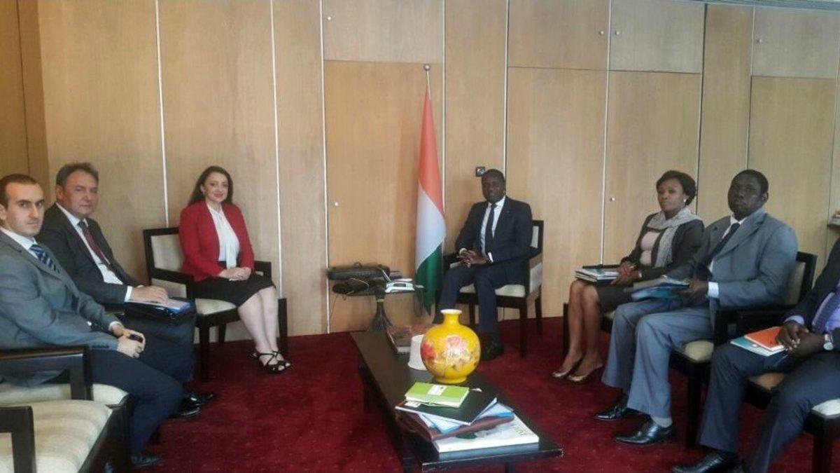 Türkiye Sanayici İş Kadınları ve İş Adamları Konfederasyonu Genel Başkanı Nezaket Emine Atasoy, Fildişi Sahili Cumhuriyetine ziyaret gerçekleştirdi.Türkiye Sanayici İş Kadınları ve İş Adamları Konfederasyonu Genel Başkanı Nezaket Emine Atasoy, Türkiye ile Fildişi Sahili Cumhuriyeti arasında ekonomik ve ticari ilişkilere katkı sağlamak amacıyla gerçekleştirdiği ziyarette ilk olarak Tarım ve Kalkınma Bakanı Mamadou Sangafowa Coulibaly ile görüştü. Tarım Bakanlığında yapılan görüşmede Bakanlık bürokratları ve Türkiye Cumhuriyeti Abidjan Büyükelçiliği diplomaları hazır bulundu.Fildişi Sahili Cumhuriyeti Tarım ve Kalkınma Bakanı Mamadou Sangafowa Coulibaly yapmış olduğu konuşmasında "Öncelikle ülkemize yapmış olduğunuz ziyaret için çok teşekkür ederim. Tarımsal Kalkınma politikalarında Türkiyeyi örnek alıyoruz ve sizlerle tarımsal faaliyetlerde her türlü işbirliği yapmaya hazırız" dedi.Türkiye Cumhuriyeti Abidjan Büyükelçiliği organizasyonu ile düzenlenen ziyaret kapsamında Fildişi Sahili Cumhuriyetinde bulunmaktan duyduğu memnuniyeti dile getiren Atasoy ise, "Türkiye Sanayici İş Kadınları ve İş Adamları Konfederasyonu Türkiye Cumhuriyeti ile Fildişi Sahili Cumhuriyeti arasında ekonomik ve ticari ithalat ihracat ilişkilerimiz in güçlenmesi için ne gerekiyorsa yapacaktır" ifadelerini kaydetti.Türkiye Sanayici İş Kadınları ve İş Adamları Konfederasyonu Genel Başkanı Nezaket Emine Atasoy Fildişi Sahili Cumhuriyeti temaslarına devam ediyor.