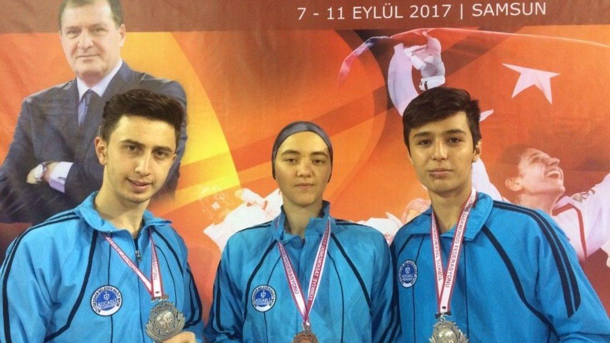 Kocaeli Büyükşehir Belediye Kağıtsporlu tekvandocular, Samsun’da yapılan Gençler Türkiye Tekvando Şampiyonasında 2 gümüş ve 1 bronz madalya kazandı.Samsun’daki Yaşar Doğu Spor Salonu’nda yapılan ve 71 ilden bin 330’u erkek, 700’ü bayan olmak üzere 2 bin 30 sporcunun mücadele ettiği Gençler Türkiye Tekvando Şampiyonası yapıldı. Şampiyonaya bir antrenör, sekiz sporcu ile katılan Kocaeli Büyükşehir Belediye Kağıtspor Kulübü, zorlu karşılaşmaları geçerek turnuvayı 2 gümüş ve 1 bronz madalya kazanarak noktaladı.Turnuvada yarışan mavi beyazlılardan Genç Erkekler 63 kg’da Mehmet Kaan Şenkuru gümüş, Genç Erkekler 68 kg’da Onur Erzan gümüş ve Genç Bayanlar 63 kg’da Zülal Altun bronz madalya kazandı. Turnuvanın en iyi performanslarından birini gösteren Büyükşehirli sporcular müsabakaların ardından düzenlenen törenle madalyalarını aldı.