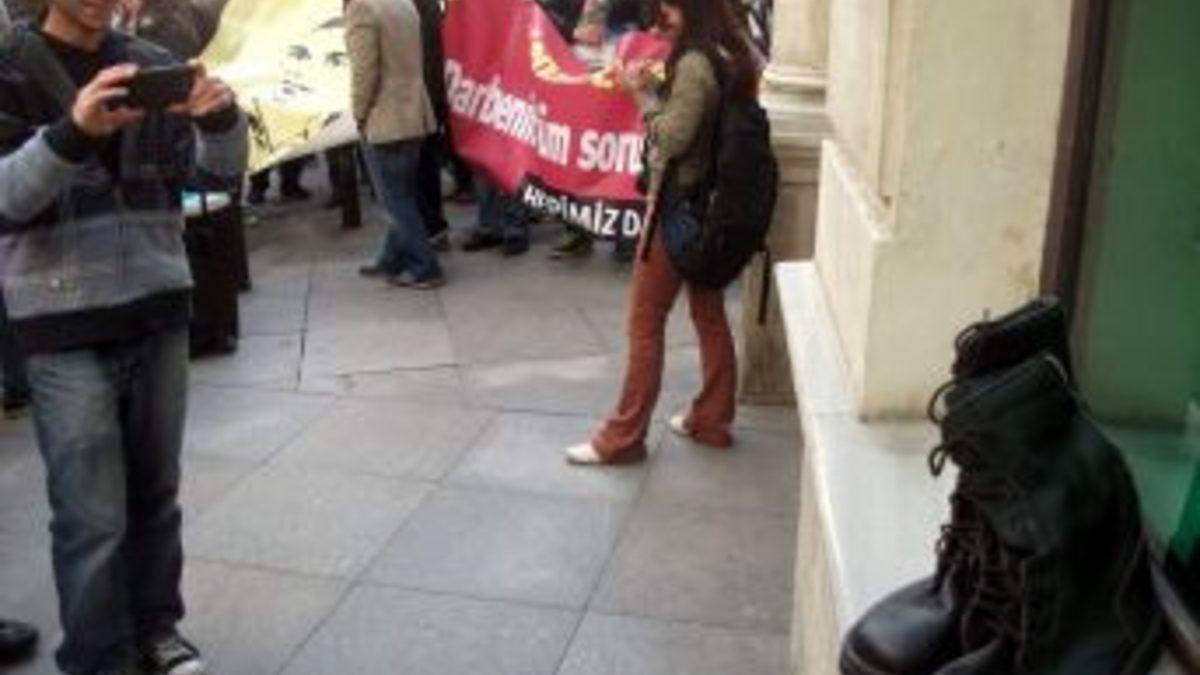 İstanbul Beyoğlu’nda ‘Hepimiz Davacıyız-Evren Yetmez İnsiyatifi’ adlı grup, 12 Eylül darbesinde rolü olduğunu iddia ettikleri TÜSİAD yöneticilerinin yargılanması isteğiyle eylem yaptı. Taksim Meydanı’ndan Tepebaşı’na yürüyen grup TÜSİAD binası önüne postal bıraktı.