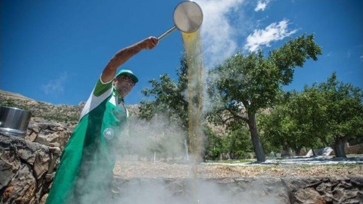 İsmini ‘dut’ meyvesinden alan Tut ilçesinde vatandaşların en önemli geçim kaynağı olan dut hasadı başladı.Dağlık bir bölgede bulunan Tut ilçesinde halkın büyük çoğunluğunun geçim kaynağı haline gelen dut meyvesinden ürünler yapılmaya başladı. Dut meyvesiyle adından söz ettiren Tut ilçesinde, dut hasadının başlamasıyla kazanlar dolusu pekmezler yapılmaya başlandı. Her yıl binlerce dut meyve fidanının toprakla buluşturulduğu Tut ilçesinde, dut meyve ağacının sayısı her gecen yıl artıyor.Tut ilçesinde bulunan binlerce dut meyve ağacından her yıl 550 ton ürün elde ediliyor. Yıllık 300 ton dut pekmezi, 250 ton kuru dutun üretimi yapılarak piyasaya sunuluyor. Türkiye dışında yabancı ülkelere de pazarlanan dut ürünleri ilçede hijyenik koşullarda hazırlanıyor. İlçe ekonomisinin lokomotifi konumunda olan dut meyvesi ilçede yaklaşık bin çiftçinin geçim kaynağı.Dutbahcem İşletme Sahibi Kadir Dursun, tamamen organik olan dut ve dut ürünlerinin sağlıklı ve doğal yöntemlerle hazırlandığını dile getirdi.Kadir Dursun, “Ağaçlardan silkelenelen dut geleneksel yöntemlerle hijyenik koşullarda sıkılıyor. Sıkılan dut suyu kazanlarda kaynatılıyor. Kaynatılan dut suyu güneşte bekletiliyor. Özel kaplarda güneşte bekletilen pekmezin üzerine örtülen ince tül sayesinde pekmezin içerisine yabancı maddelerin girmesi engelleniyor” dedi.Dut hasadında çalışan kişilerin hijyenik koşullara uymalarının birinci kural olduğunu belirten Dursun, sağlığın önemine işaret etti.Tut Ziraat Odası Başkanı Ahmet Özen ise, ilçede kuru dut ve dut pekmezinin yaygın olduğunu, dut pestilinin fazla yaygın olmadığını belirterek, dut meyveciliğini geliştirmek için çeşitli çalışmalar yapıldığını söyledi.Dut pekmezinin 8-12 TL fiyat aralığında satıldığı öğrenildi.