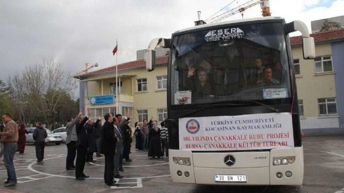 Kocasinan Kaymakamlığı tarafından başlatılan ‘100.Yılında Çanakkale Ruhu’ projesi kapsamında üçüncü öğrenci kafilesi Ahmet Eren Anadolu Lisesi önünden uğurlandı.Bursa - Çanakkale Kültür turları kapsamında 3.öğrenci kafilesi Ahmet Eren Anadolu Lisesi önünden uğurlandı. Uğurlama törenine Kocasinan Kaymakamı Ali CANDAN , İlçe Milli Eğitim Şube Müdürü Faruk Uzunkoca , öğrenciler ve velileri katıldı. Törende konuşan Kocasinan Kaymakamı Ali Candan proje kapsamında bugün üçüncü grubu uğurladıklarını belirterek, “Hocalarımıza ve öğrencilerimize hayırlı yolculuklar diliyorum. 12 hafta boyunca sürecek turlarımızın bugün 3.turunu uğurluyoruz. Hayırlı olmasını dilerim” ifadelerini kullandı.Bursa ve Çanakkale illerine gidecek olan öğrenciler ise çok mutlu olduklarını ve Kocasinan Kaymakamlığına teşekkür ettiklerini belirtti.