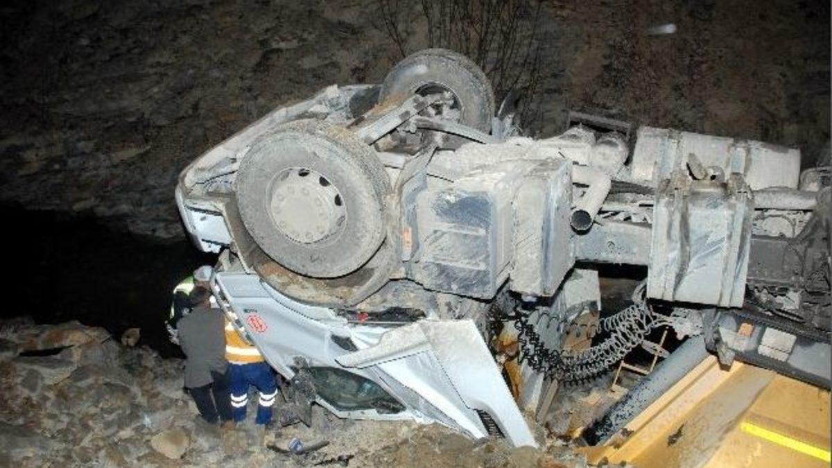 Samsun'da uçuruma yuvarlanan TIR'ın sürücüsü kurtarma ekipleri tarafından halat yardımıyla sedye ile çekilerek yola çıkartılıp ambulansla hastaneye kaldırıldı.