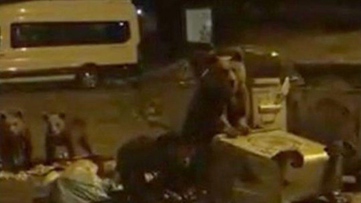 Hüseyin TÜCCAR/BURSA (DHA)- TÜRKİYE'nin gözde turizm merkezlerinden Uludağ'da ormanda aç kalan ayı ve 3 yavrusu oteller bölgesine 2 kilometre uzaklıkta bulunan restoran ve piknik alanının bulunduğu Sarıalan Bölgesi’nde çöp konteynerlerından yiyecek ararken cep telefonuyla görüntülendi.
