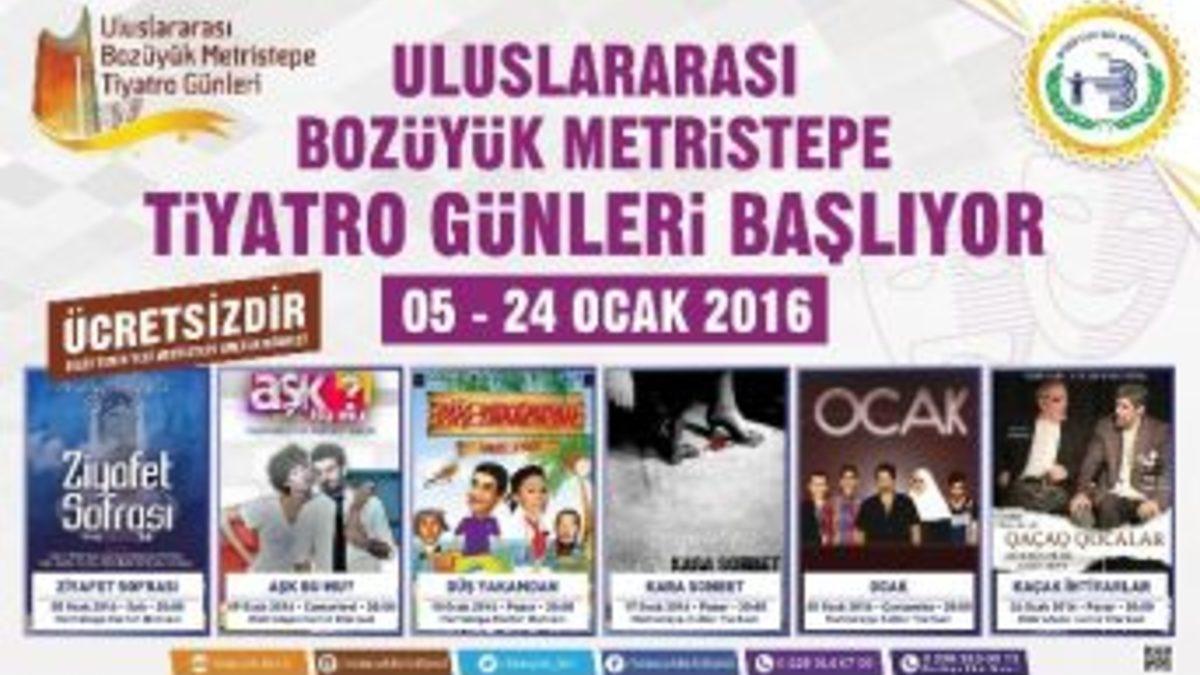 Bozüyük Belediyesi tarafından ilk defa düzenlenecek olan Uluslararası Bozüyük Metristepe Tiyatro Günleri, 5 Ocak 2015 Salı günü başlıyor.Bozüyüklüleri tiyatro ve tiyatronun usta oyuncuları ile buluşturacak olan festival kapsamında sanatseverler, 19 gün boyunca birbirinden güzel oyunlar ve birbirinden değerli oyuncularla bir araya gelecek. Bozüyük Belediyesi tarafından gerçekleştirilen ve Bozüyük ile çevresinden gelen sanatseverleri tiyatroyla buluşturmayı ve tiyatro sanatını yaşatmayı ve sevdirmeyi amaçlayan Uluslararası Bozüyük Metristepe Tiyatro Günleri’nde 17 oyun sahnelenecek. 5 Ocak 2016 Salı günü ’Obez’ adlı çocuk oyunu ile başlayacak Tiyatro Günleri 24 Ocak 2016 Pazar günü akşamı Azerbaycan Tiyatro Ekibi’nin yetişkinlere yönelik ’Kaçak İhtiyarlar’ adlı oyunu ile sona erecek. Bozüyük Belediyesi tarafından bu yıl ilk kez gerçekleştirilecek olan, Metristepe Tiyatro Günler izleyenleri tiyatronun o güzel ve sıcak havasıyla buluşturacak.Metristepe Kültür Merkezi’nde sahnelenecek oyunlar ise şöyle sıralanıyor:"5 Ocak Salı günü ’Obez Çocuk’ adlı çocuk oyunu gündüz 2 seans, akşam ’Ziyafet Sofrası’ adlı yetişkin oyunu, 6 Ocak Çarşamba günü ’İki Bavul Dolusu’ adlı çocuk oyunu gündüz 2 seans, 7 Ocak Perşembe günü ’Kralın Yeni Elbisesi’ adlı çocuk oyunu gündüz 2 seans, 9 Ocak Cumartesi günü akşamı gala programı ile birlikte ’Aşk Bu Mu?’ adlı yetişkin oyunu, 10 Ocak Pazar günü akşamı ’Cengiz Küçükayvaz Tiyatrosu Düş Yakamdan’ adlı yetişkin oyunu, 11 Ocak Pazartesi günü ’Maskot Bandosu’ adlı çocuk oyunu gündüz 2 seans, 12 Ocak Salı günü ’Ali Babanın Balon Çiftliği’ adlı çocuk oyunu gündüz 2 seans, 14 Ocak Perşembe günü ’Süper Çöpü’ adlı çocuk oyunu gündüz 2 seans, 15 Ocak Cuma günü ’Cesur Papağan’ adlı çocuk oyunu gündüz 2 seans, 17 Ocak Pazar günü akşamı Çanakkale Güzel Sanatlar Oyuncuları’ndan ’Kara Sohbet’ adlı yetişkin oyunu, 18 Ocak Pazartesi günü ’Cimri’ adlı çocuk oyunu gündüz 2 seans, 19 Ocak Salı günü ’Çizmeli Kedi’ adlı çocuk oyunu gündüz 2 seans, 20 Ocak Çarşamba günü ’Şirinler Süt Festivali’nde’ adlı çocuk oyunu gündüz 2 seans, akşam ’Ocak’ adlı yetişkin oyunu, 21 Ocak Perşembe günü ’Gösteri Kumpanyası’ adlı çocuk oyunu gündüz 2 seans ve 24 Ocak Pazar günü Azerbaycan Tiyatro İşçileri Tiyatro Gurubu tarafından ’Kaçak İhtiyarlar’ adlı yetişkin oyunu."Bozüyük Belediyesi Uluslararası Bozüyük Metristepe Tiyatro Günleri kapsamında sahnelenecek oyunları izlemek isteyen tiyatroseverler her oyun için ayrı olarak hazırlanan ücretsiz biletlerini Metristepe Kültür Merkezi’nden temin edebilecekler.