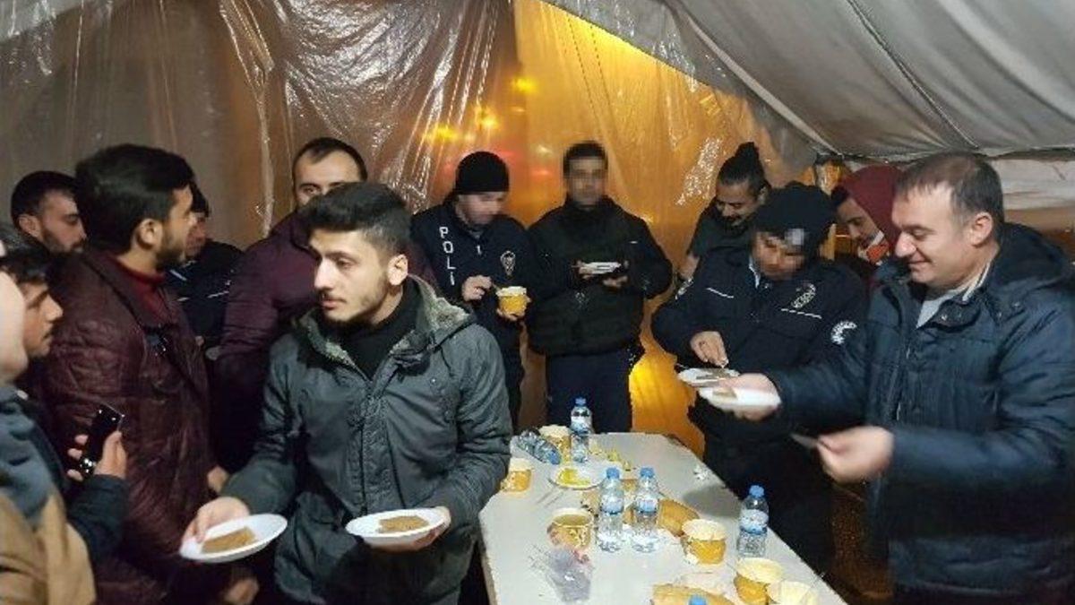 Adıyaman Kredi ve Yurtlar Kurumu Yurtlarında kalan üniversite öğrenciler İl Müdürü Sami Köroğlu ile birlikte gecenin ilerleyen saatlerinde polis noktasını ziyaret ederek çorba ikramında bulundu.İstanbul’da terör örgütü tarafından gerçekleştirilen bombalı saldırı nedeniyle Adıyaman Kredi ve Yurtlar Kurumu Müdürü Sami Köroğlu, gece geç saatte polis noktasında nöbet tutan polisleri ziyaret ederek başsağlığında bulundu. Gençler görevli polis memurlarına sıcak çorba ve tatlı ikramında bulundu.KYK Adıyaman İl Müdürü Sami Köroğlu "Millet olarak çok önemli badirelerden geçiyoruz. Fakat inanç, iman, vatan ve millet sevgisiyle bu badireleri atlatacağız. Bunun en güzel örneğini gençliğimizin bu tür durumlar karşısındaki tutumunda görebiliriz. Gençlerimizin gecenin bu saatinde bile olsa polisimizi ve diğer güvenlik görevlilerimizin yalnız olmadıklarını onlara hissettirmeleri, bizler sıcak yataklarımızda yatarken birilerinin bu ülke için gece gündüz demeden, karda kışta görevlerini en iyi şekilde ifa ettiklerini görmek gençlerimizin geleceğe dair ideallerini daha da sağlamlaştıracaktır. Hain terör saldırıları ile şer odakları amaçlarına hiç ulaşamayacaklar çünkü bu milletin birlik ve beraberliği, dik duruşu bunlara gereken cevabı vermektedir" dedi.Ziyaretten dolayı memnuniyetlerini dile getiren emniyet mensupları, gençlere bu duyarlılıklarından dolayı teşekkür etti.