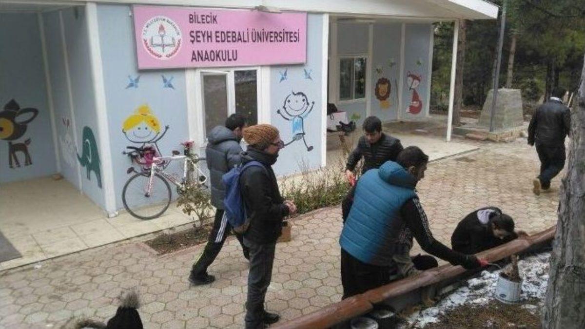 Bilecik Şeyh Edebali Üniversitesi öğrencileri, üniversite bünyesindeki anaokulunu renklendirdi.Üniversite içerisinde faaliyet gösteren öğrenci kulüpleri, anaokulunun bahçesinde bulunan çitleri boyayarak miniklere renkli bir dünya bıraktı. Gerçekleştirdikleri etkinliğin çok önemli olduğunu belirten üniversite öğrencileri de, çitleri boyarken güzel dakikalar yaşadı.