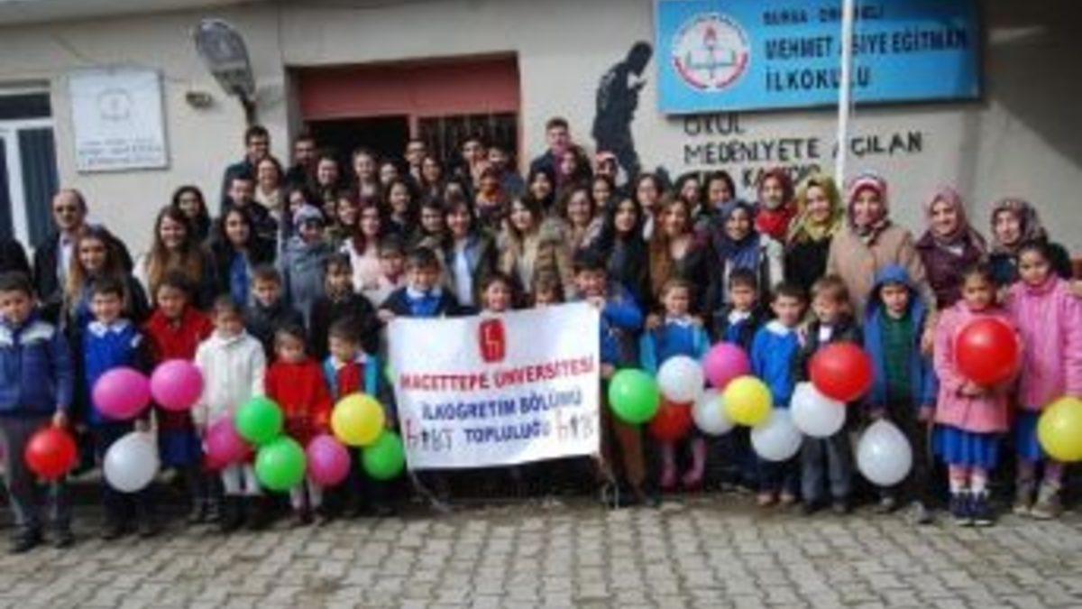 Ankara Hacettepe Üniversitesi İlköğretim Bölümü Topluluğu öğrencileri, Bursa’nın Orhangazi ilçesinde köy okullarını ziyaret etti.İlköğretim Bölümü Topluluğu Başkanı Hasan Gökdemir, 7 bölgede 7 okulu ziyaret ettiklerini söyledi. Gökdemir, “Okul ziyaretlerini 45 kişilik topluluk üyesi üniversite öğrencileri ile yürütüyoruz. Köy okulu öğrencilerine umut oluyoruz. 7 bölge ve 7 okul projesi karşılıklı faydalar sağladığı gibi, bu projenin 3 etabını Orhaneli’nin Akalan Mahallesi’nde gerçekleştirdik” dedi.Sabah kahvaltısını köylerin evinde yapan öğretmen adayları, daha sonra okul sınıflarında öğrencilere kitap ve kırtasiye malzemesi dağıttı.