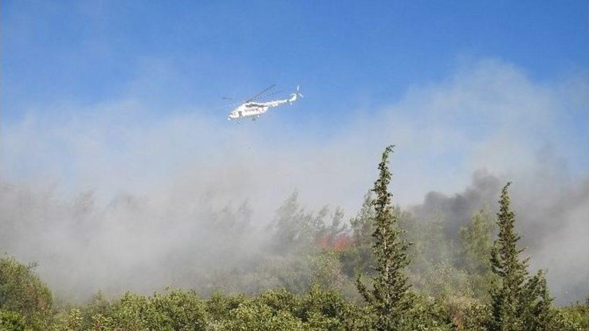 Urla ilçesi Özbek Mahallesi’nde akşamüzeri başlayan yangına karadan ve havadan müdahale ediliyor.Bölgede kuvvetli esen rüzgarın çalışmaları olumsuz yönde etkilediği belirtilirken, yangına 14 arazöz, 5 su tankeri, 4 helikopter ve 5 dozer ile müdahale ediliyor. Yangının sebebi ve yangından ne kadar alanın etkilendiği henüz bilinmiyor.
