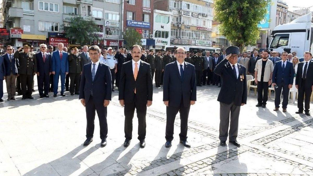 19 Eylül Gaziler Günü dolayısıyla 15 Temmuz Demokrasi ve Şehitler Meydanı’nda tören düzenlendi.15 Temmuz Şehitler Meydanı’nda yapılan törene, Vali Salim Demir, Milletvekilleri Mehmet Altay, Âlim Tunç, Belediye Başkanı Nurullah Cahan, protokol üyeleri gaziler ve şehit yakınları katıldı.Atatürk Anıtı’na çelenklerin konulmasının ardından saygı duruşu ve İstiklal Marşı’nın okunmasıyla başlayan törende Uşak Muharip Gaziler Derneği Genel Başkanı İsmail Soyöz konuşma yaptı. Uşak Muharip Gaziler Derneği Genel Başkanı İsmail Soyöz, yaptığı konuşmada, 19 Eylül’ün vatanı için canını ortaya koyarak savaşan ve gazilik onuruna ulaşan kahramanların şeref günü olduğunu söyledi. Vatanın ve milletin varlığının devamını, bayrağın göklerde dalgalanmasını, özgürlüğün korunmasını ve milletçe namusla, şerefle yaşamayı, gazi ve şehitlere borçlu olduklarını ifade etti.Tören sonrası Vali Salim ve protokol üyeleri, Türkiye Harp Malulü Gaziler Şehit Dul ve Yetimleri Derneği ile Türkiye Muharip Gaziler Derneği ve Uşak Şehit Aileleri Yardımlaşma ve İnsan Hakları Derneklerine ziyarette bulundular. Ziyaretlerin ardından protokol üyeleri, gaziler ve şehit aileleriyle Hasbahçe polisevinde düzenlenen yemek programında bir araya geldi. Yemekte konuşan Vali Salim Demir, "Bir devletin büyüklüğü kendisine hizmet eden kendisi için savaşan, canını veren veya gazi olan vatandaşlarına verdiği değerle doğru orantılıdır. Özellikle son on beş yılda Devletimiz, gazilerimize ve şehit ailelerine sunulan hizmetlerde çok önemli merhaleler kat etti ve çok önemli haklar tanıdı. Devletimiz için canını feda eden şehitlerimiz ile canını hiçe sayarak mücadele eden gazilerimize huzurlarınızda Uşak Valiliği ve Devletimiz adına şükranlarımı sunuyorum. Sayın Cumhurbaşkanımızın üzerinde durduğu en önemli konulardan birisi olan şehit aileleri ve gazilerimiz, Devletimizin her türlü imkanlarından yararlanmaktadırlar ve yararlanmaya devam edeceklerdir. Bu vesileyle Devletimizin tüm kurumlarıyla şehit ailelerimizin ve gazilerimizin her türlü ihtiyaçlarını gidermeye hazır olduğumuzu “Gaziler Günü” vesilesiyle özellikle ifade etmek istiyorum" dedi.