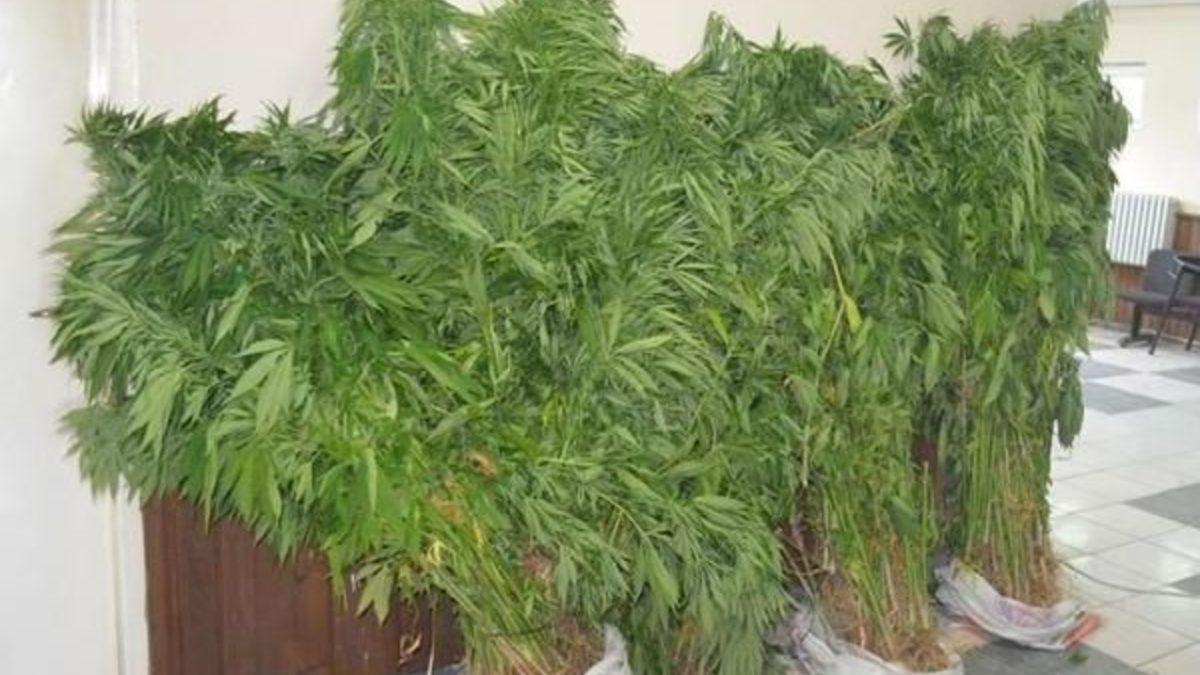 Uşak İl Emniyet Müdürlüğü ekipleri, il merkezinde H.E (36) ve N.K.'ya (39) ait iki ayrı eve bugün sabah saatlerinde yaptığı operasyonda evlerin bahçelerinde 424 kök hint keneviri ele geçirdi. Polis tarafından sökülen hint kenevirleri imha edilirken, H.E. ve N.K. gözaltına alındı.