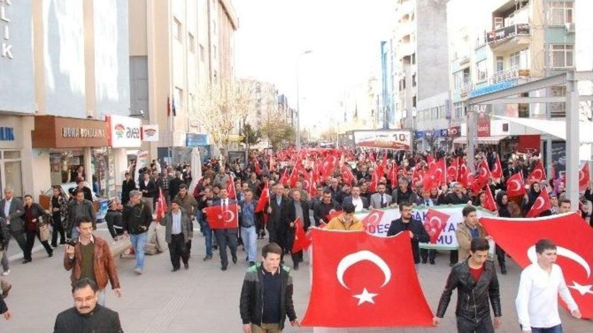 Uşak’ta, İstanbul’da meydana gelen terör saldırısı sonrası şehit edilen Cumhuriyet Savcısı Mehmet Selim Kiraz için yürüyüş yapıldı ve akabinde gıyabi cenaze namazı kılındı.Uşak Kardeşlik ve Dayanışma Platformu’nun organizasyonunda gerçekleştirilen etkinlik, Uşak Belediyesi önünden yürüyüşle başladı. Ellerinden Türk bayraklarıyla yürüyen grup adına Tiritoğlu Parkı’nda bir basın açıklaması yapıldı. Platform adına açıklama yapan İsmet Çambel, “Bu millet, kendi değerlerine ve hukuka saygılı savcısının emanetine sahip çıkacaktır. Allah’ın rahmeti şehidimizin, laneti katillerinin üzerine olsun” dedi.TÜRK BAYRAKLARIYLA YÜRÜYÜŞ YAPILDIUşak Kardeşlik ve Dayanışma Platformu’nun organize ettiği ve AK Parti Uşak İl ve İlçe Teşkilatları’nın da desteklediği yürüyüş, Uşak Belediyesi önünde başladı. Önceki gün terör örgütü mensupları tarafından şehit edilen İstanbul Cumhuriyet Savcıları’ndan Mehmet Selim Kiraz için İsmetpaşa Caddesi üzerinde bayraklarla yürüyüş yapıldı. Terör karşıtı sloganların atıldığı yürüyüş, Tiritoğlu Parkı’nda basın açıklamasıyla devam etti. Uşak Kardeşlik ve Dayanışma Platformu adına basın açıklamasını İsmet Çambel yaptı. İsmet Çambel, saldırıya gerekçe gösterilen Berkin Elvan davasının bahane edildiğini belirtti. “Berkin Evlan bu kanlı ellerce ömrünün baharında kullanılmış, eline taş verilerek sokağa sürülmüş, öldükten sonra da yine aynı kanlı eller ülkenin huzuruna kastetmiştir” diyen İsmet Çambel, şöyle devam etti: “Bu hainliği yapanlar, ölü bedeni kullanmayı sürdürmüşlerdir. Ülkemizde yıllardır süren Kürt-Türk kavgasının sonlandırılması için çok ciddi adımlar atılmıştır. Fakat buradan kendilerine ekmek çıkaramayacağını düşünen küresel güçler, bir Alevi-Sünni çatışmasını çıkarabilir miyiz düşüncesine bürünmüştür. İslam coğrafyasındaki Şii-Sünni kavgasının bir fitilini de Türkiye’de ateşleyebilir miyiz düşüncesiyle maşalarını sahaya sürmüşlerdir. Türkiye’deki terör örgütleri, şimdiye kadar hep batılı gizli örgütler tarafından beslenmişlerdir. Tarihten ibret aldığımız bu vesile ile yeryüzünün zalimlerine ve maşalarına küresel emperyalistlere, vakarlı duruşumuzu sürdüreceğimizi bildirmek istiyoruz. Onların oyunlarına asla gelmeyeceğiz”.ŞEHİT SAVCININ GIYABINDA CENAZE NAMAZI KILINDIBasın açıklamasının ardından, terör saldırısı sonucu şehit düşen Cumhuriyet Savcısı Kiraz’ın ruhu için gıyabında cenaze namazı kılındı. Uşak Valisi Seddar Yavuz’un da yer aldığı cenaze namazında; AK Parti Uşak İl Başkanı Basri Yıldırım, İl Genel Meclisi Başkanı Mehmet Nacar, AK Parti Uşak Merkez İlçe Başkanı Turgay Eser, Memur Sen Uşak Şube Başkanı Emin Acar, sivil toplum örgütü temsilcileri ve vatandaşlar katıldı. Cenaze namazının ardından tüm şehitlerin ruhuna dua edildi. Grup etkinliğin ardından olaysız bir şekilde dağıldı.